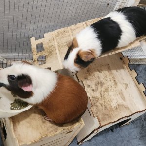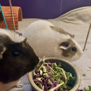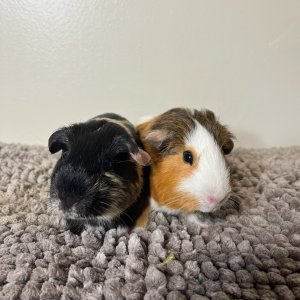 Cookie and Twix are a bonded pair of female guinea pigs looking for their forever home. Cookie (with the ginger and brown patches) is around 5...