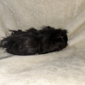 These two guinea pigs are father and son. Black one is smaller born in Sep 2024. Father was born in April 2024. So they are about 2 years old....
