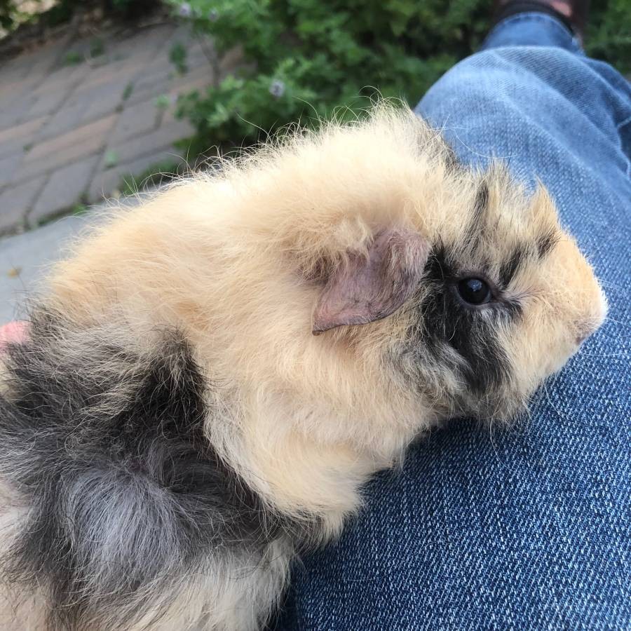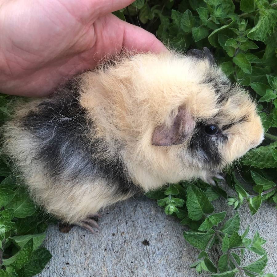 Leo is a beautiful boy! He's friendly with humans, including little kids, but got into squabbles with the adult male guinea pig we tried to bond him with. He's heterozygous for the lunky gene, a dominant curly haired gene. This means he's super cute and unusual! He had medium-length hair and a beautiful lemon and agouti coat. He's healthy, robust, and fun to watch playing. He loves head scratches and treats from the garden. Dandelions are his favorite! He was born June 11, 2025.