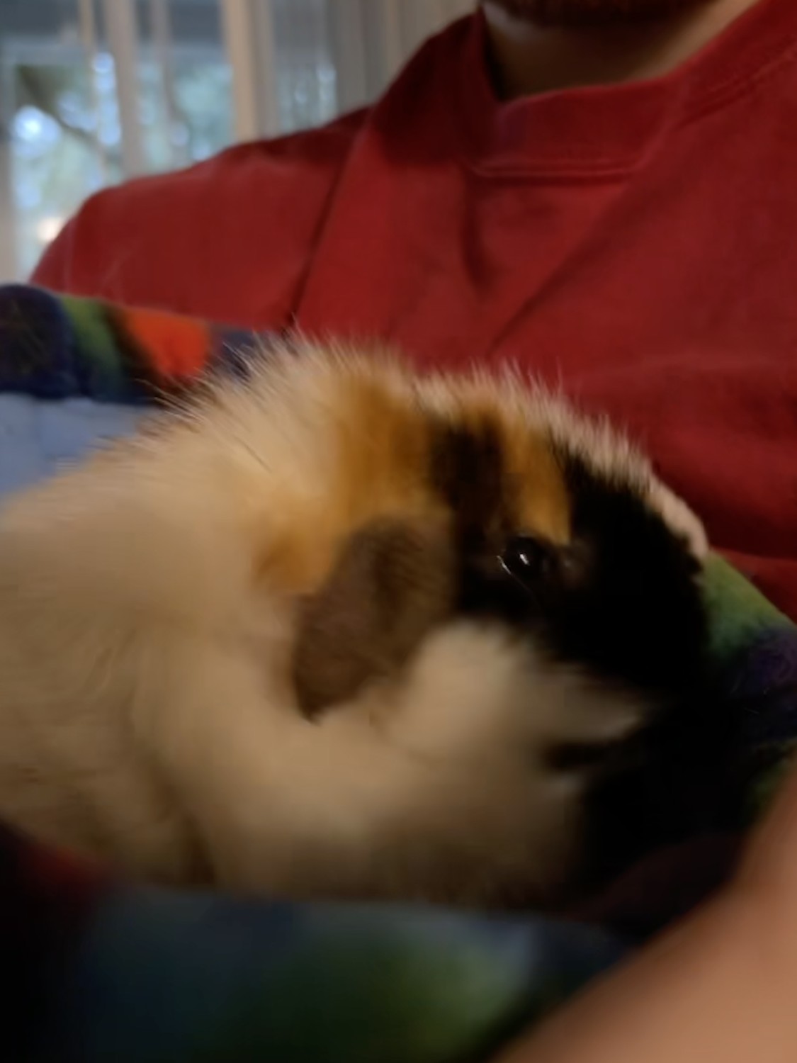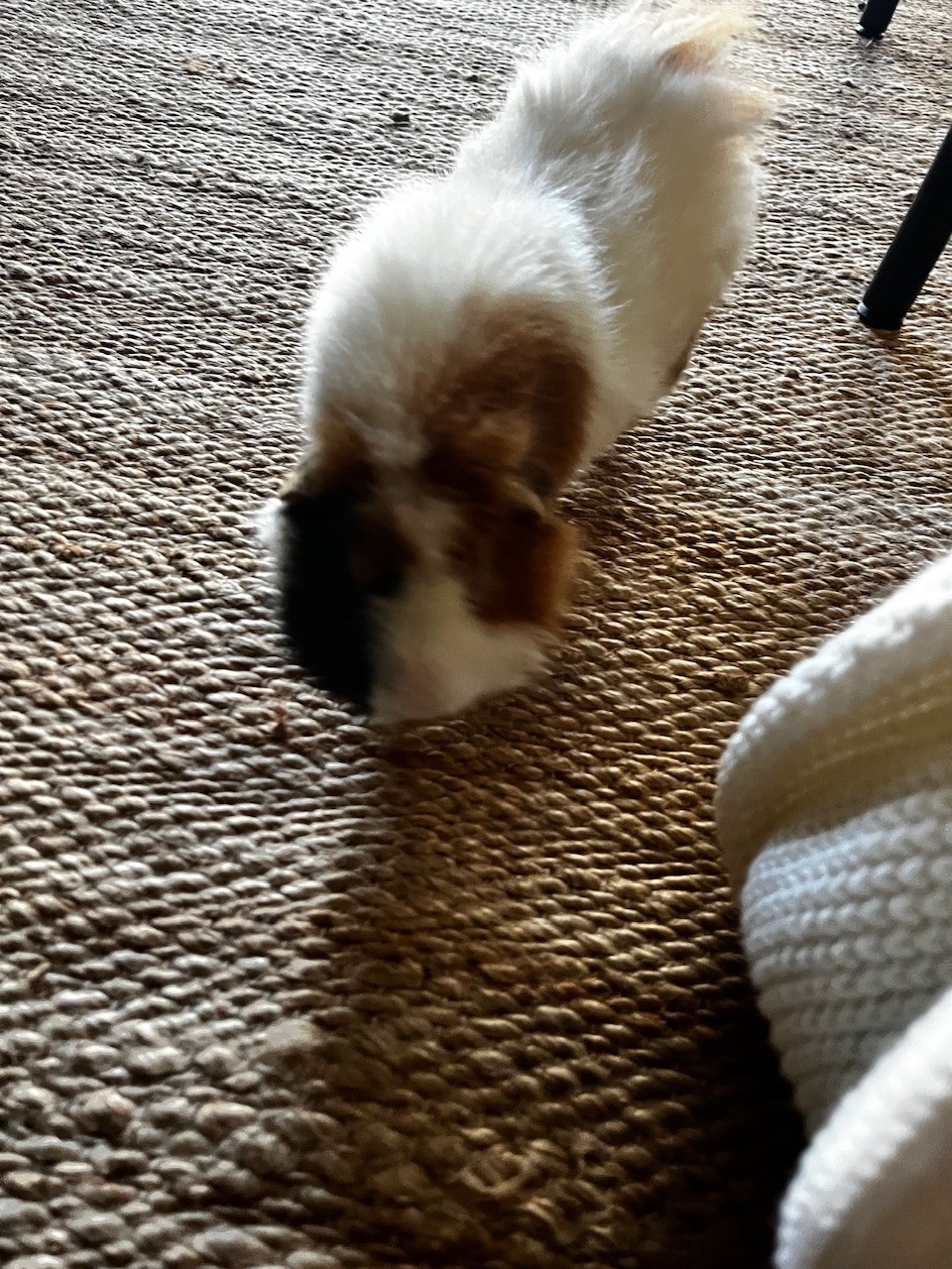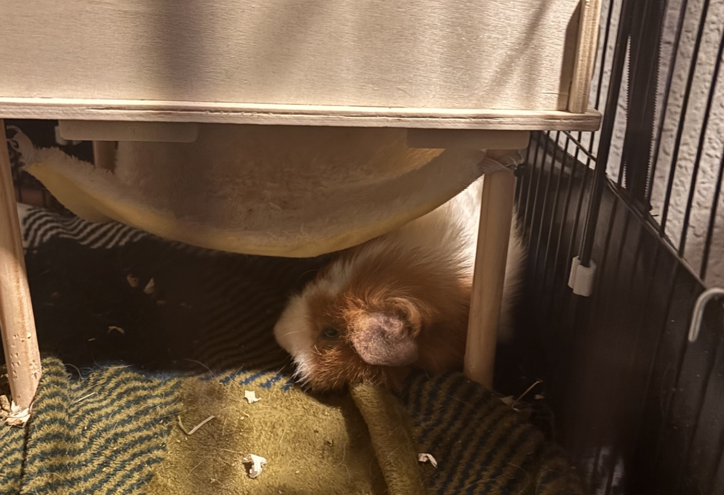 Buttercup, unfortunately, came from a pet store with lackluster conditions, including no proper interaction with other piggies. He has since grown fond of his hammock, hay tunnel, and zoomies in the living room. We know he would be so much happier with other guinea pigs to socialize with.