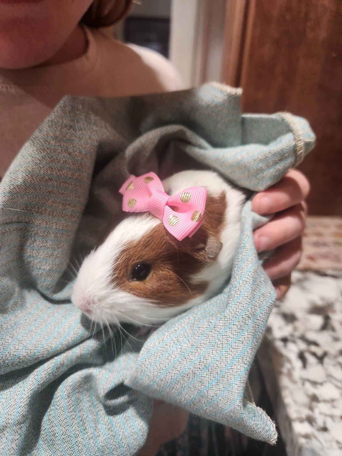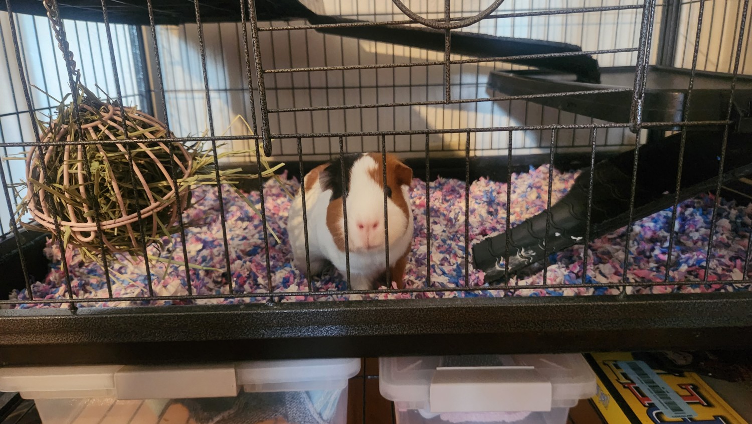 We're looking for a good home for our 1-2 year old female guinea pig, someone who can give her more time than we can. She is very sweet, attaches with her person very quickly. She is healthy. The only thing wrong with the cage is the ramps have been chewed but that's it. We are including food, dish, water dispenser, hay, bedding, grooming supplies, metal play pen and little pig house. Asking $150 for everythingTiming