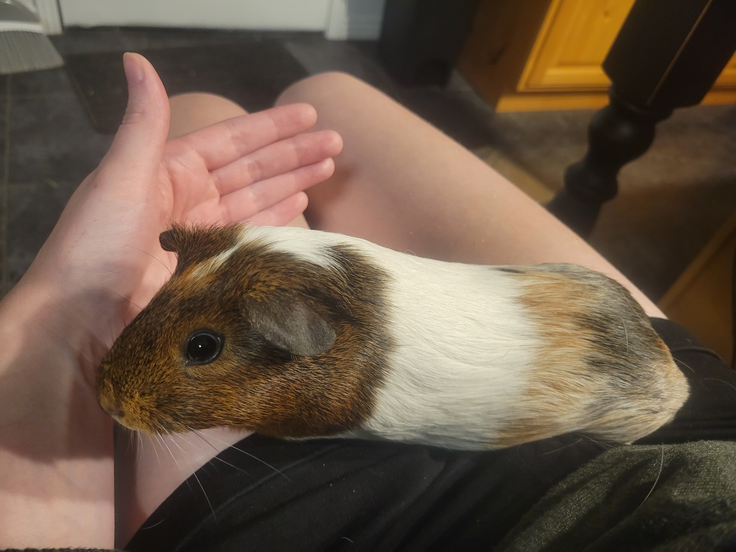 This girl has recently lost her other cage mates, and is now a lone pig. After all the vet bills I've had to pay off, I can't afford to get her a new companion and think it would be best to rehome her.Timing