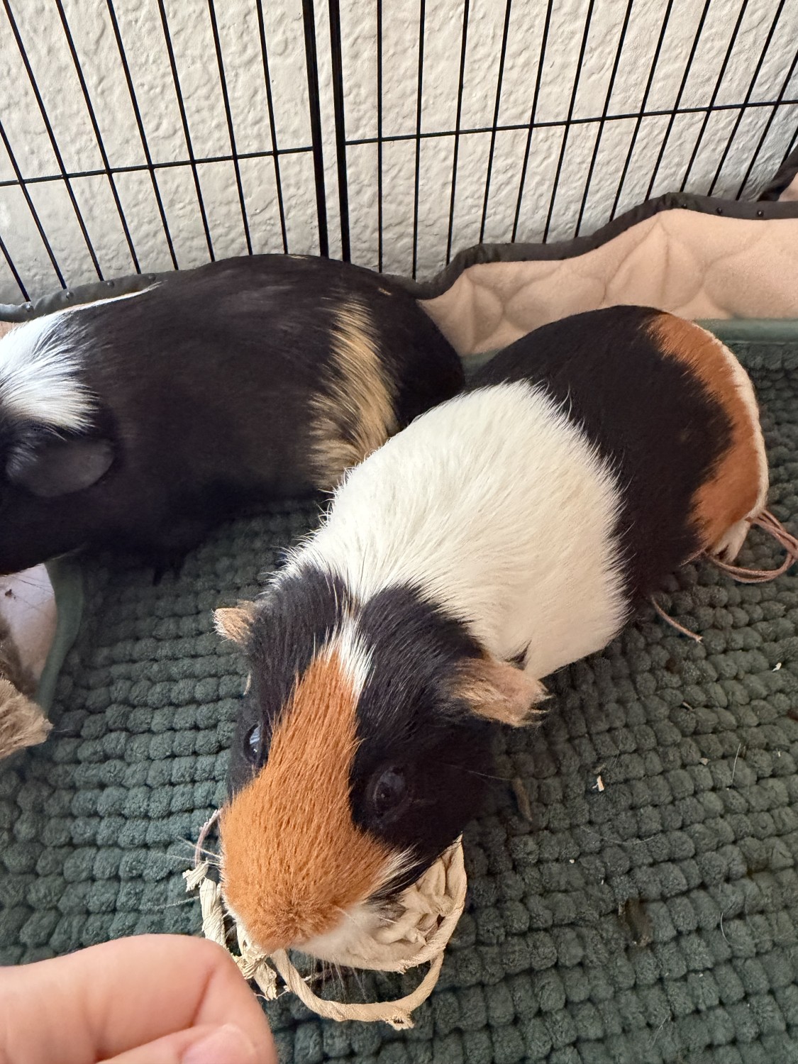 I rescued these piggies a week ago from their previous owner who seemed to be neglecting them. Sadly my son is allergic and can not breathe properly with them in the home even with medication.Timing