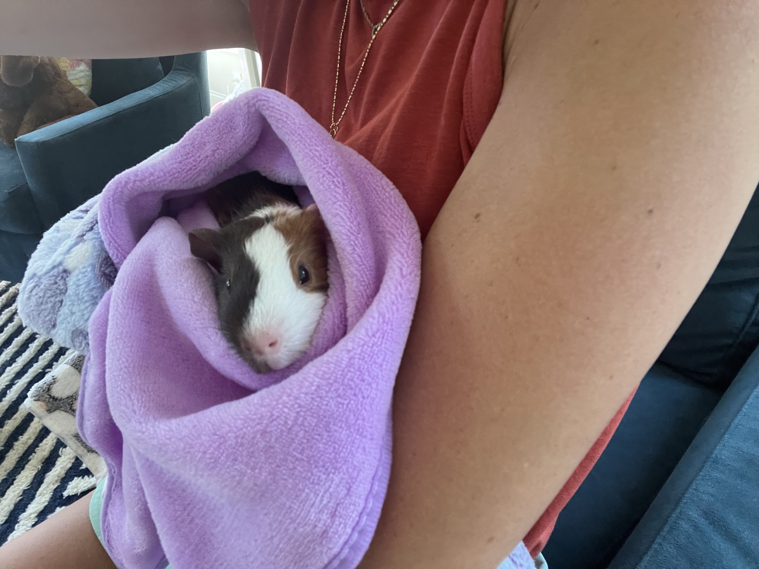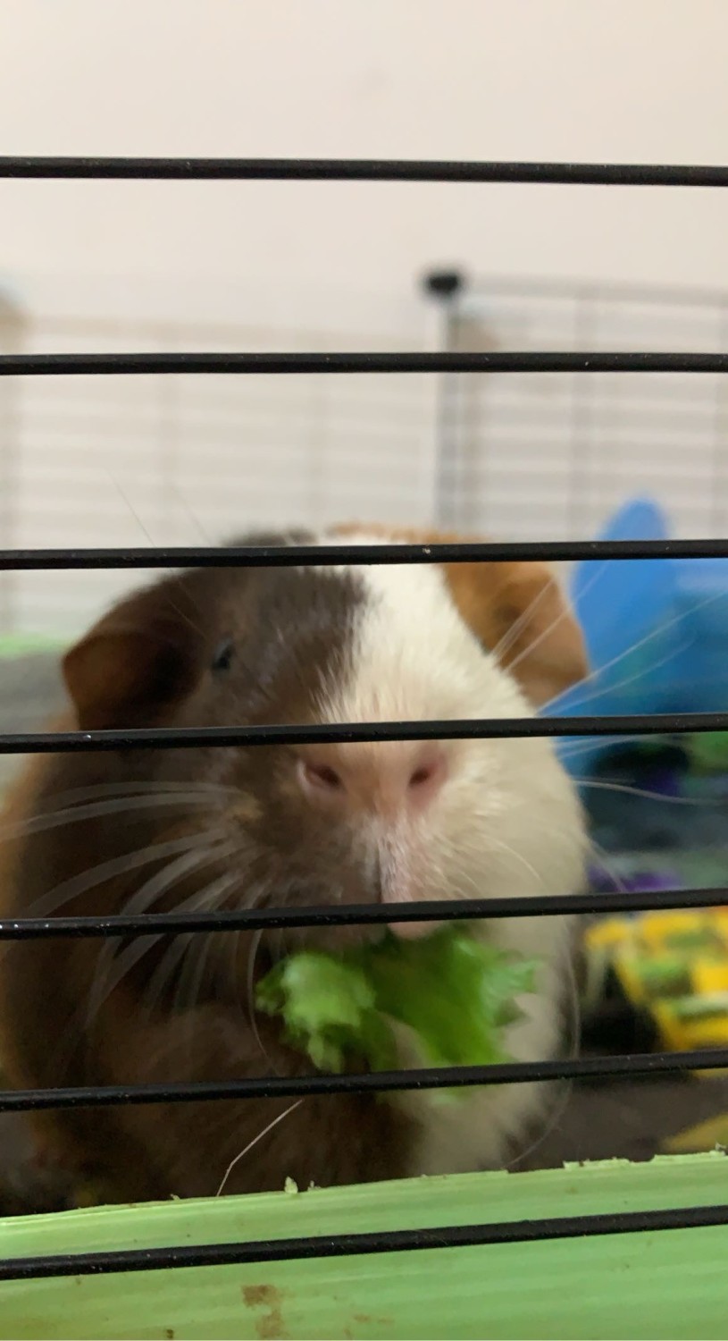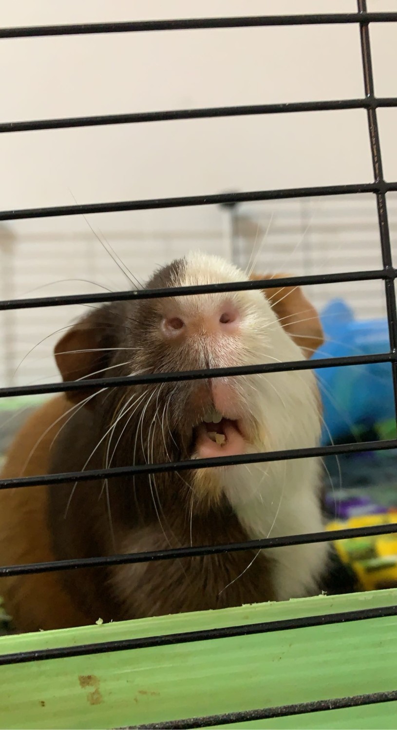 Teddy is a sweet (although shy at first), 2 year old Guinea pig. I pet sit him all summer and I’ve truly enjoyed watching him come out of his shell and become receiving of affection, and greeting me at his grids for head pets and chatting. The family I had pet sit for decided a few weeks after dropping him off to me (to temporarily take care of) that they no longer wanted him. I agreed to keep him in because I knew how to care for Guinea pigs and I’d already been caring for him. However, I do have a herd already and a small apartment, and planned for this to only be a temporary solution until I found him a loving, permanent home. What I’ve found out about him in the almost 6 months we’ve spent together:He loves his nightly salads and veggies, and will become very excited as he sees/hears you walk into the room with them.