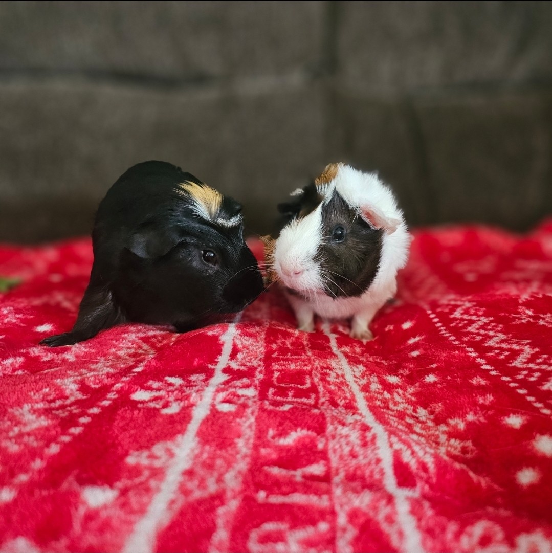 These two lovely boys are a rescue. We have other piggies as they are ours. They were in desperate need of help so we took them in and they are ready to go to a loving home ❤️. They get along but they might be shy at first. They have normal boy behaviors such as some chasing and humping. They are bonded boys and ready for a good loving home.