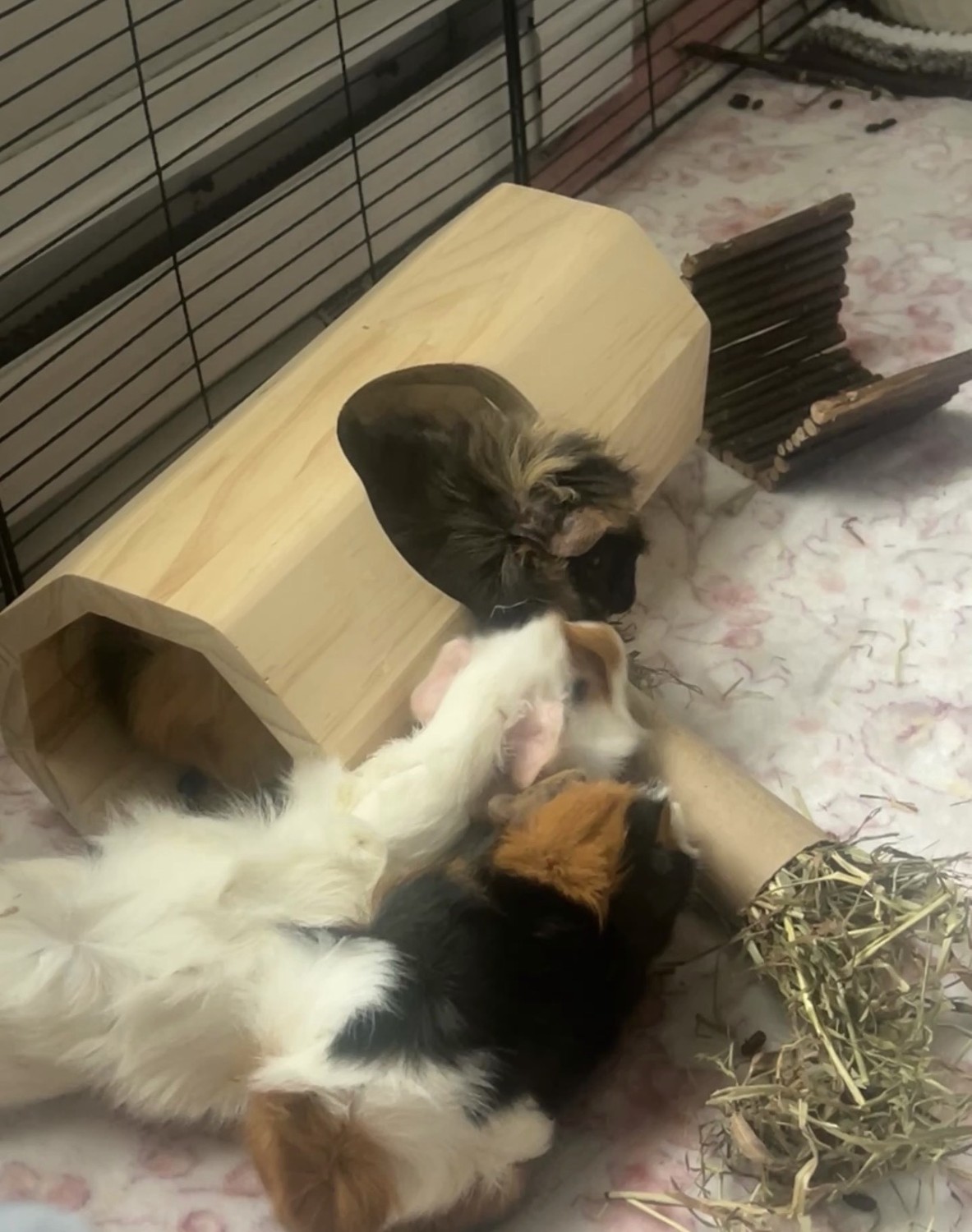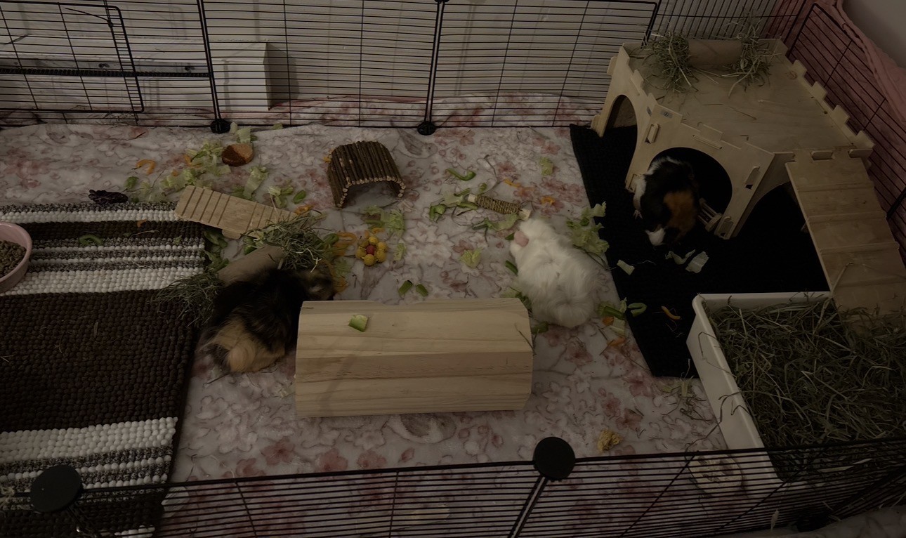 Hello, I am looking to rehome 3 female guinea pigs that are about 7 months old. They are Abyssinian piggies with very friendly and open personalities. I’ve had them for 4 months now, but due to new unfortunate circumstances in my life and housing I can’t keep them and provide the life that they deserve. They will come with 4x2 grid cage (it doesn’t have the bottom holder), a wooden hide, wooden tunnel, 2 bowls, litter box/hay tray, and a cupcake hide.Timing
