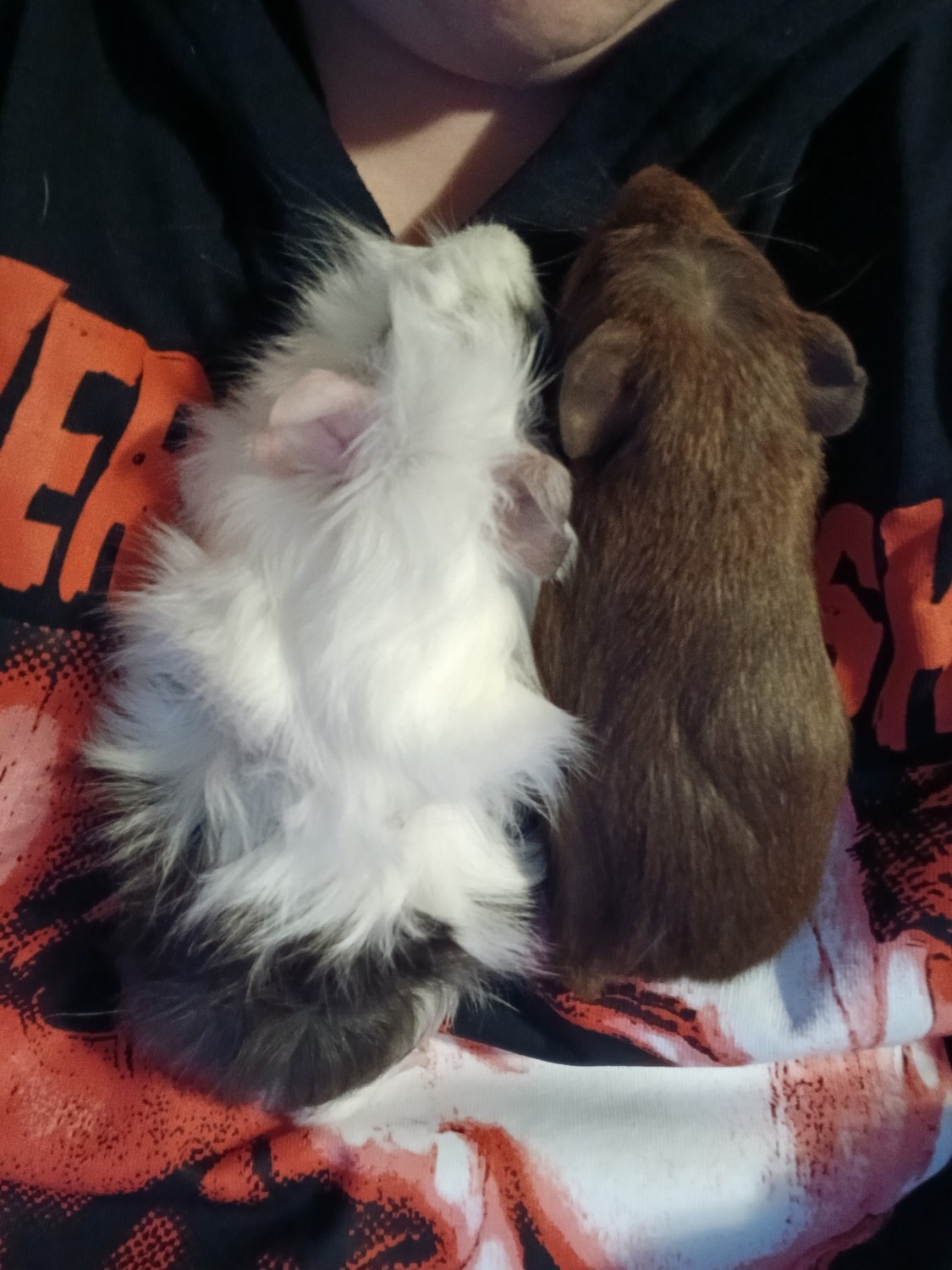 I have 7 Guinea pigs all related except one male. Starting with momma (Astrid brown abby) she is housed with all over her daughters and a half sibling to her daughters. I am adopting Artemis and her mom astrid out together. Unless your willing to take the bonded family of 5 girls. I have spent alot on them to get them back to health. If u cannot afford the full fee or answer adoption question they will not go. I also have Henry astrids only boy and his non related cage mate cricket They are 6 to 8 weeks old and very much buddys. They are to go together (males are in pairs only as adding anymore can cause alot of issues) If u adopt the boys u will get all supplies and full set up for a adoption fee to be discussed. If u adopt the herd of girls or two girls no set up but some supplies (for the girls i will be requiring proof of a herd appropriate cage or pair aproved cage) They are safe in my home till a proper forever home is available They will not go to a home and be used as a present or lesson for children these are 4 to 8+ year commitments