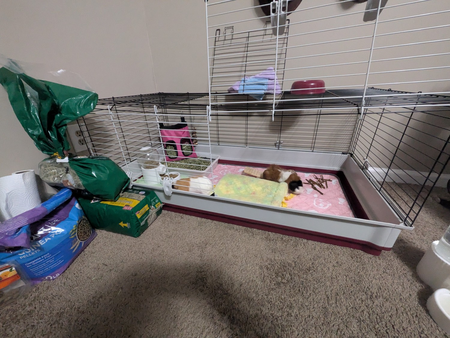 We are a family of 4 with 2 being children. We have a Yorkie who loves watching ching them run and play. I have a son with asthma and him and I are starting to have Breathing issues due to them the hay or something of the mix. We are looking for a loving home and all of there stuff is included. Asking for $65.
