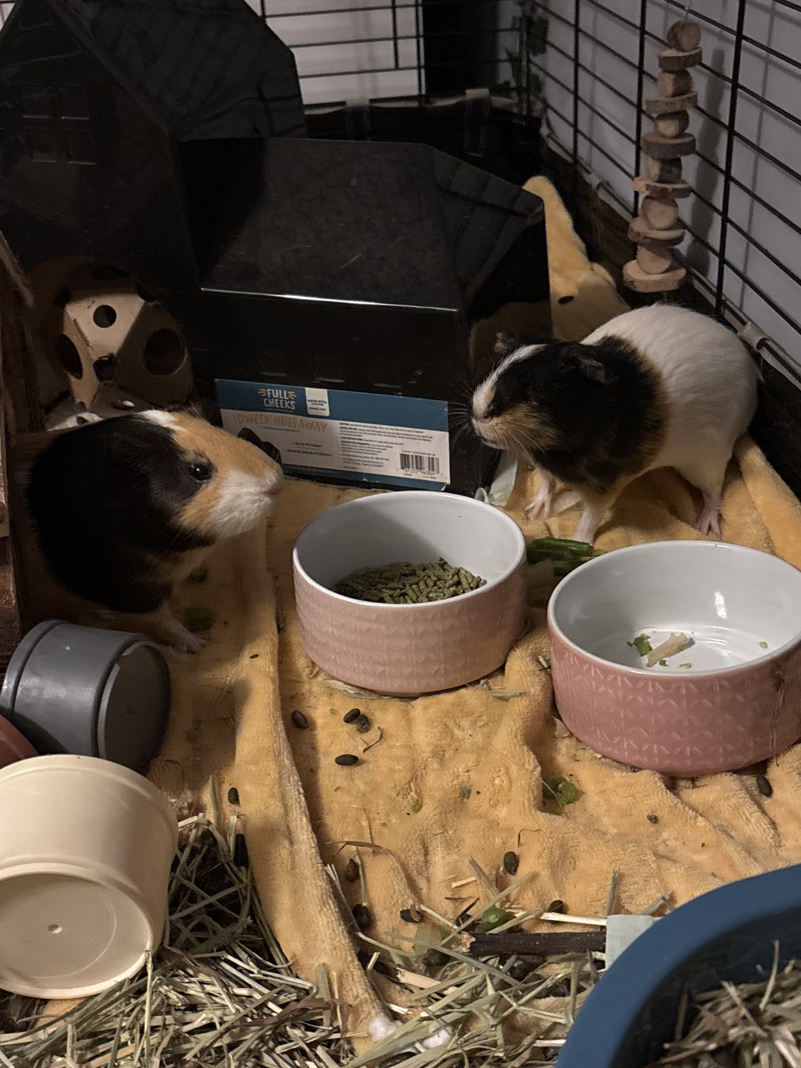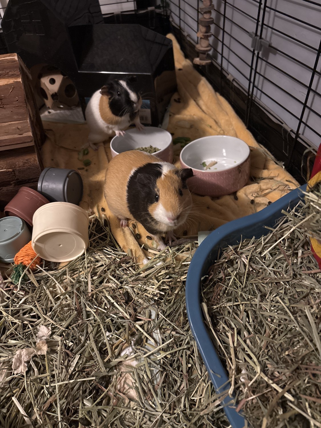Rehoming because I unfortunately do not have the time to give them the proper care and love they need as I did when I first got them. They are two very healthy and active pigs. Both are loving but a bit timid and shy as I have not had them for very long.Timing