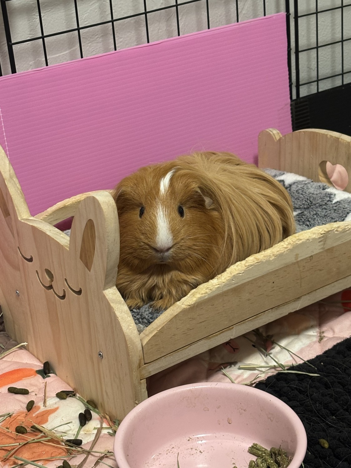 I am unable to financially support these girls any more. Scoli, the primarily white piggie, has fluid that will fill her abdomen every couple of months. There is a cheap medication that her vet supplies us with that helps reduce the fluid in her abdomen. It is easy to administer, as Scoli is usually eager to take her medicine. They will come with their C&C cage, as well as other cozy items and necessary supplies.