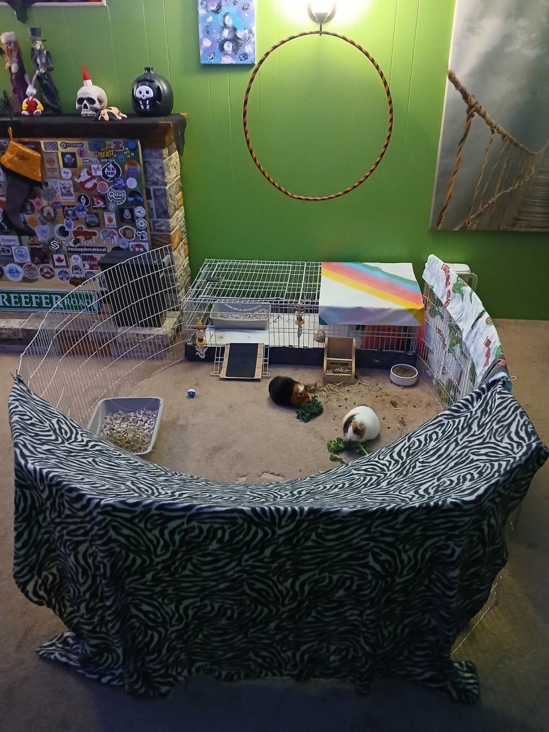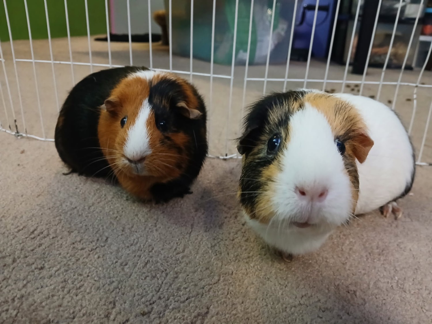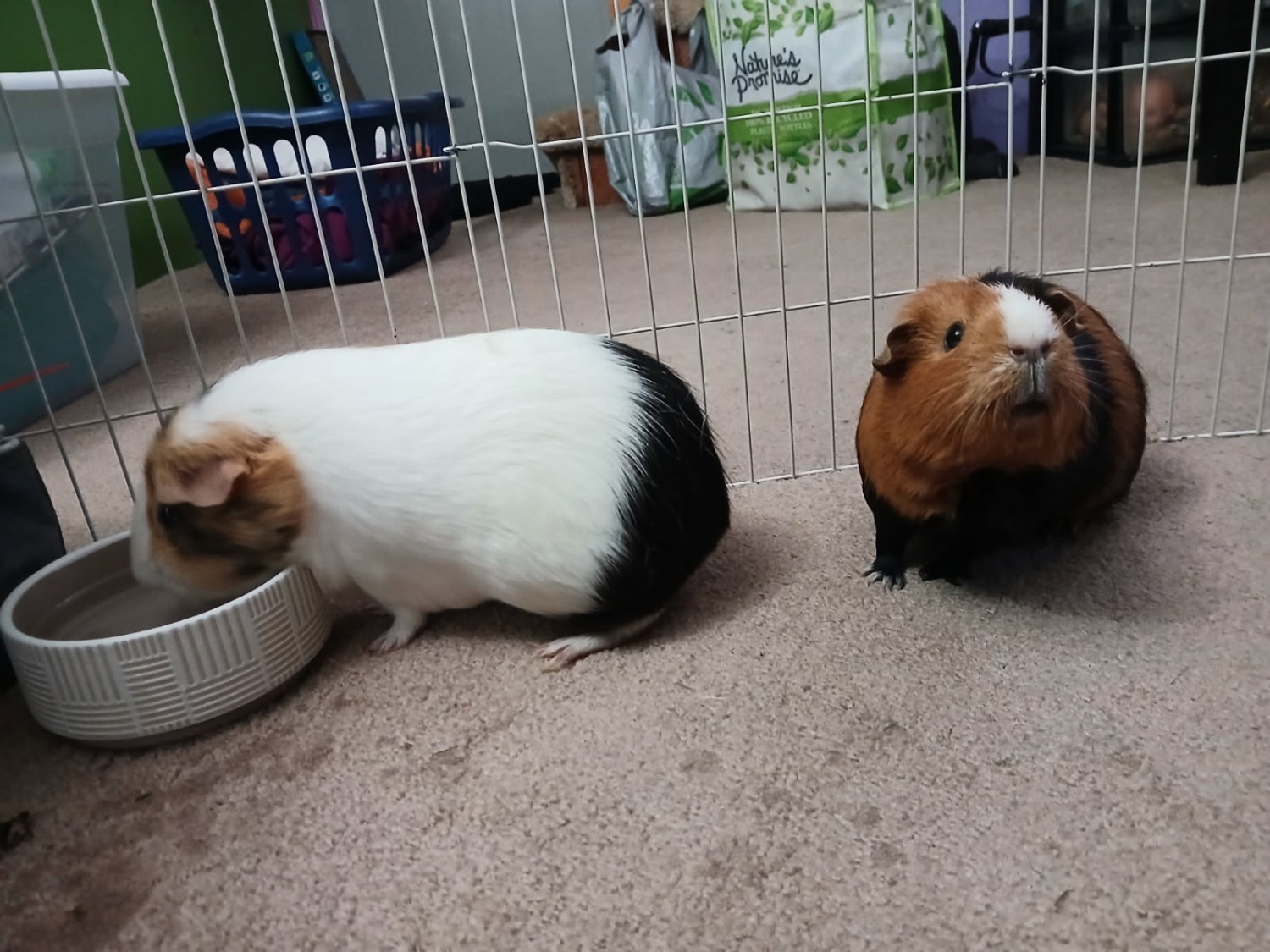 These 5 year old piggie sisters were given to me due to a bad divorce where neither wanted them. I took them in & can't find a home for them. My boyfriend is extremely allergic & has bronchitis due to allergies & now he can't be anywhere near them in my home. They come with extra large cage, huts, toys, hay & enclosure fir them to have free roam. They need free home & shocks not be in a cage all the time.Timing