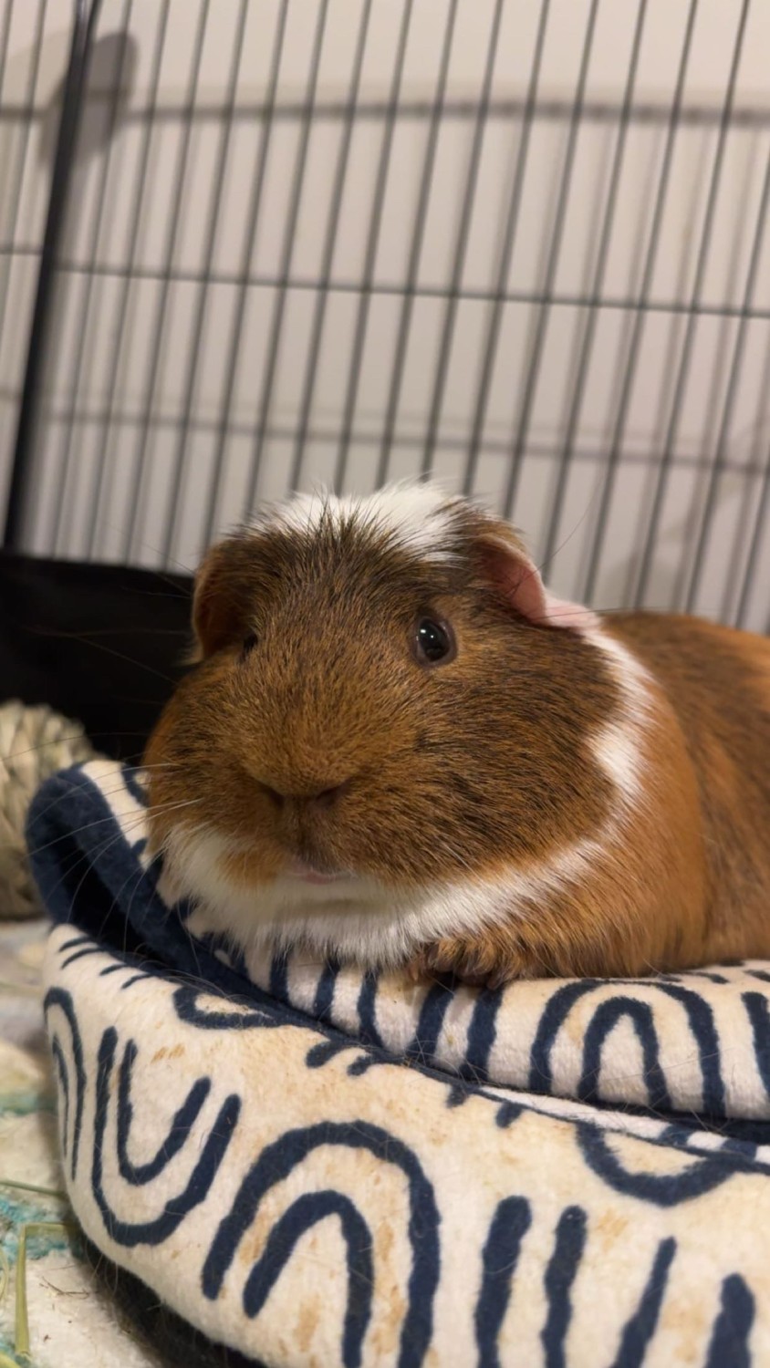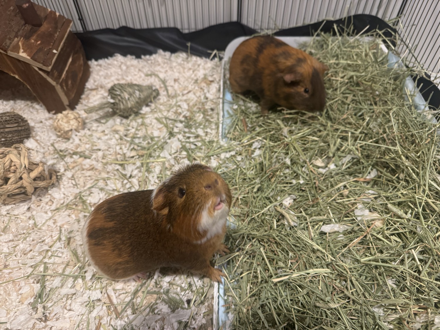 We are Tony and Freddy, and we are the sweetest bonded pair. We were adopted together from Petsmart last February and have been besties ever since. We absolutely love head scratches, licking fingers, veggies, and popcorning around outside of our cage! We are looking for a family who will adore us and take great care of us!