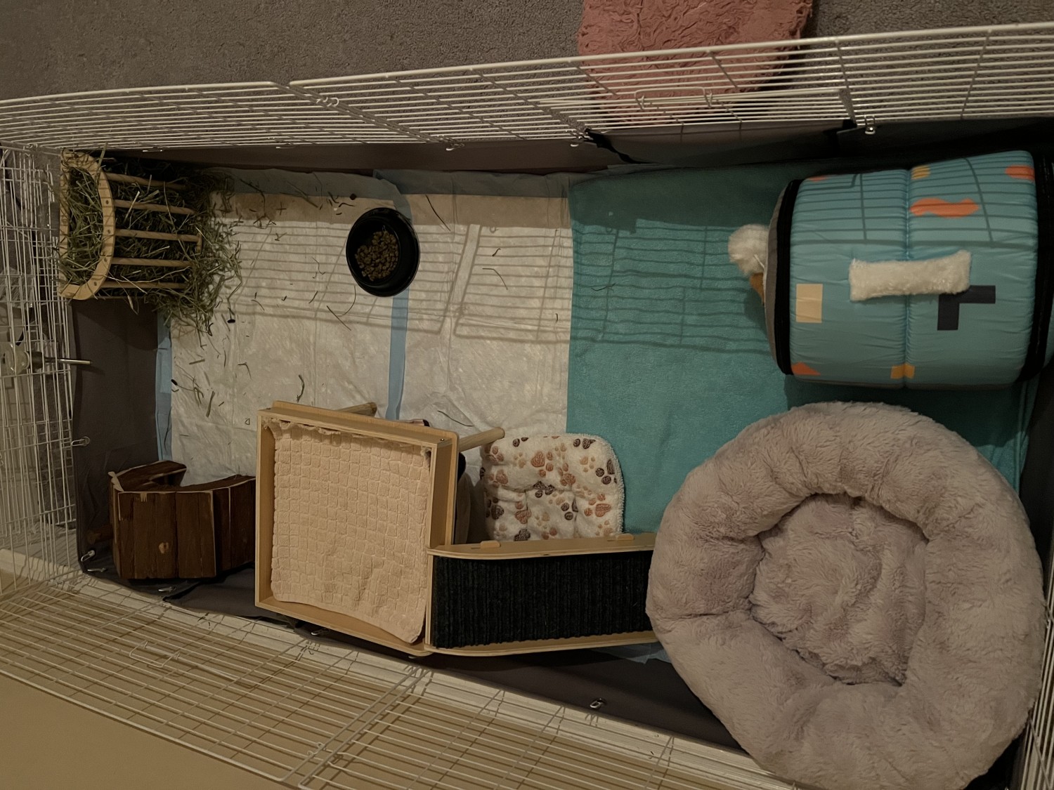 Cocoa is a loving, playful, inquisitive aberuvian guinea pig. He loves treats and play time, he’s extremely smart and knows how to use stacking cups. He has a 9x6 cage with it cover, glass water bottle, a wooden house and a soft pet hideout. He also have a plush bed, two hay racks, a wooden hammock with stairs, 3 mats and a food bowl, treats, vitamin C, pet food, disposable absorbent mats, indoor or outdoor play pen, grooming kit, guinea pig carrier and hay all valuing over $350 but will be sold all together with guinea pig for just $150. This is a great deal for someone who wants it all at a cheap cost. (Only what’s left of his pellets, treats or hay will be given upon pickup). He is 1 year and 2 months, free from all illnesses, feel free to contact me for any other inquiries