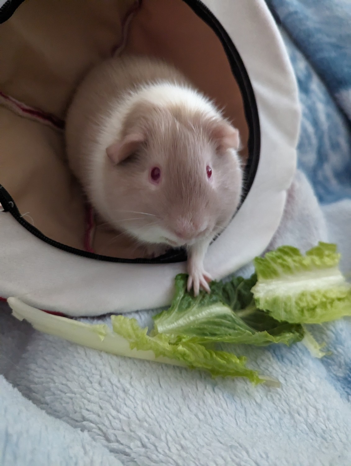 I first met Ravoili and Pierogi in late 2023 and shortly adopted them in early 2024. They are two wonderful male guinea pigs that love to have and enjoy a good veggie bowl! Perfectly healthy and cute squeakers. Pierogi is the large of the two guinea pigs and is a lighter color. Ravoili is the darker one with an off brown line on his back. Theses two boys were abonded and found by a shelter. They are assumed to be of the same litter. Their DOB is late November 2023. Unfortunately, my circumstances have changed and thus they deserve a better home that has more time and resouces.
