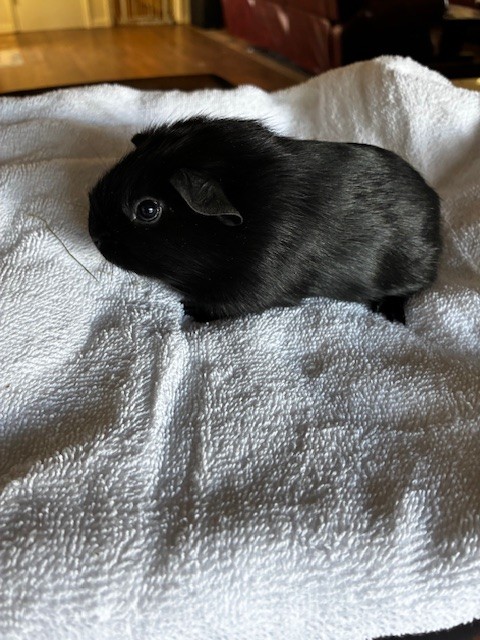 Raised for showing in 4-H, circumstances changed. These are show quality solid (Self) black going back generations and consistently producing Roman nose, thick fur, with show quality conformation.Timing