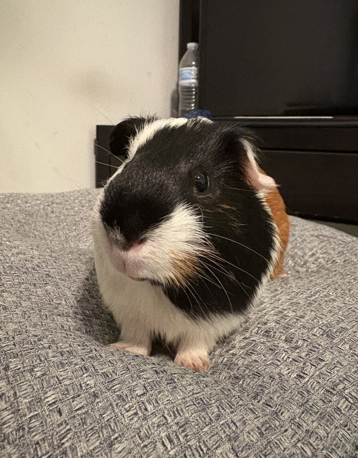I adopted him while I was in college studying for the LSAT, and he quickly became my little study buddy—often sitting beside me on a pillow while I worked. He has the sweetest personality with just the right amount of sass. His favorite treats are lettuce and strawberries, and if you offer him a fruit he doesn’t approve of, he’ll politely leave it in his bowl until it’s removed.