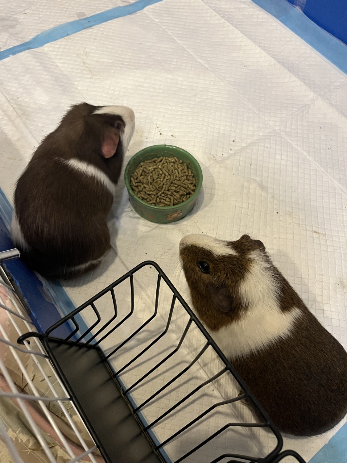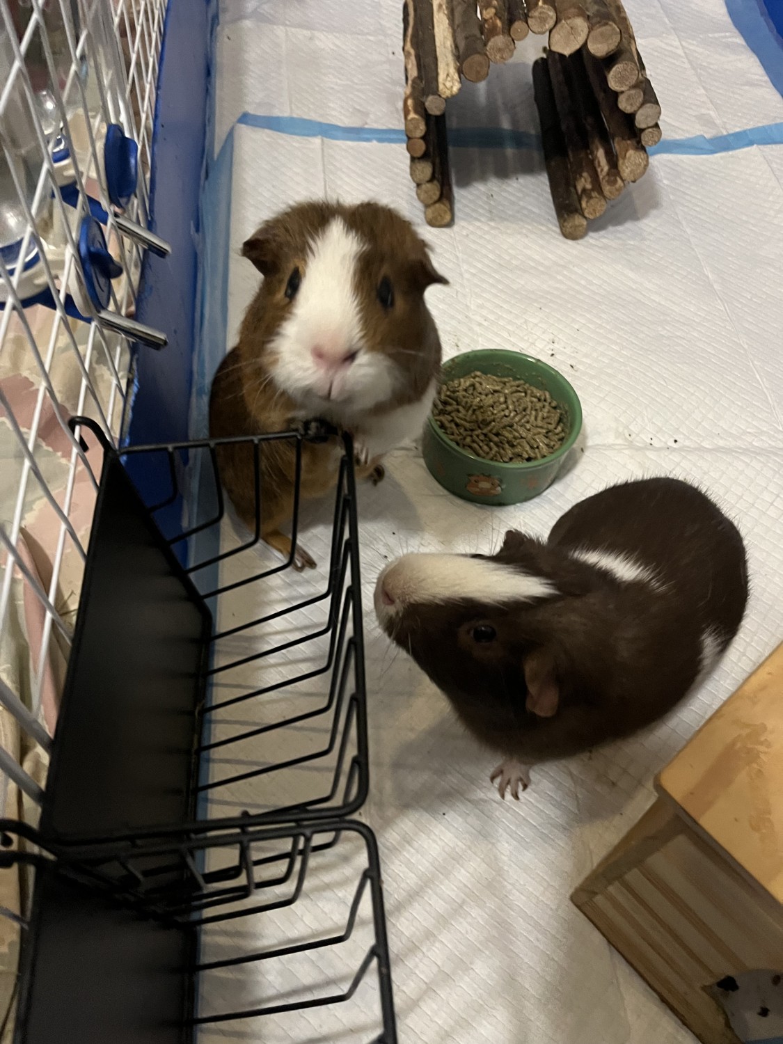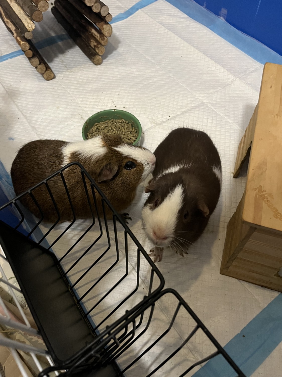 We adopted Coco and Leo (both males) about 2.5 years ago. They are very loving and would like to rehome them to a caring family. Comes with 3x5 cage, two water bottles, and remaining hay and disposable pads.