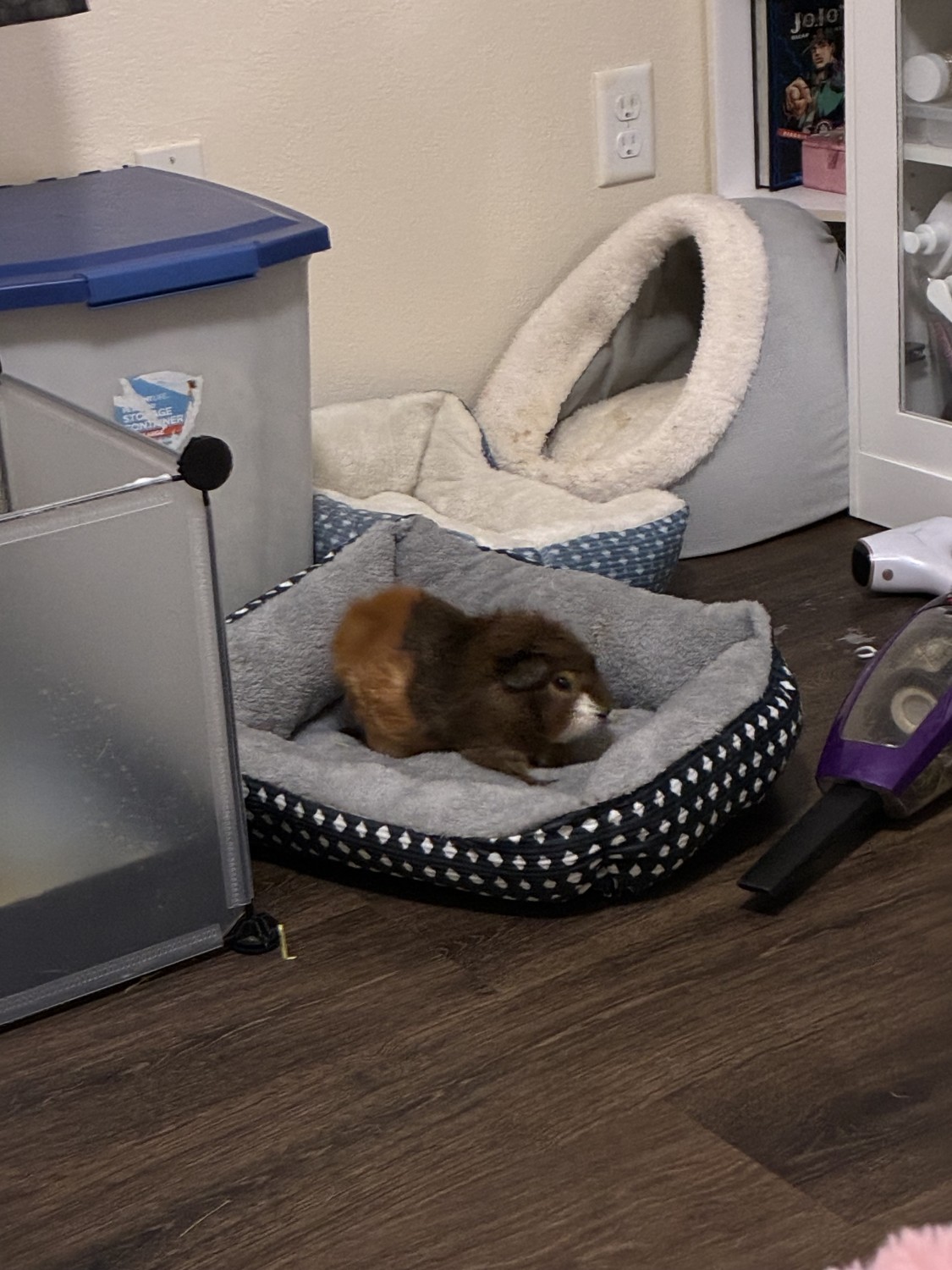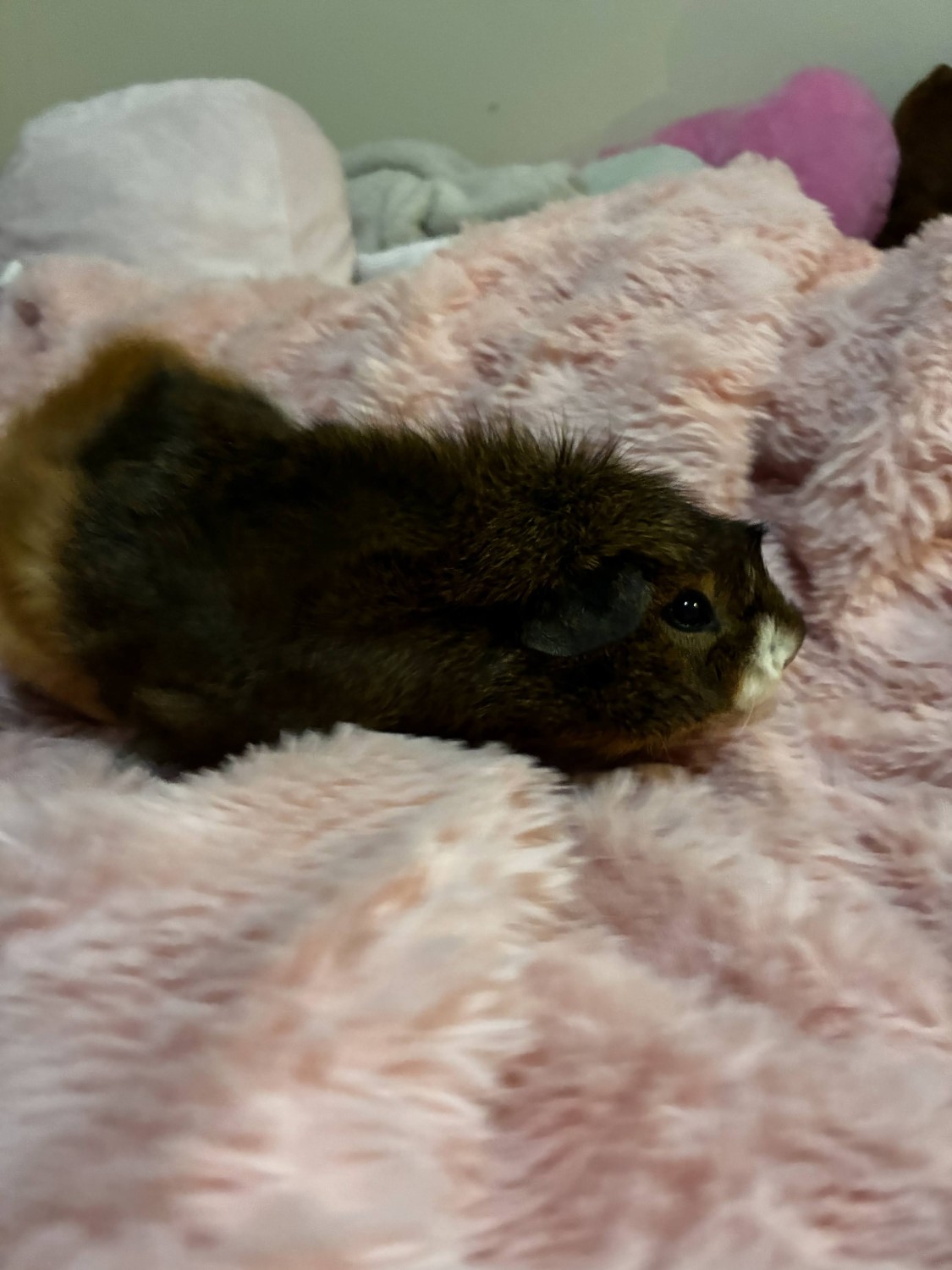Brownie is a shy but gentle male guinea pig. He is around 2 and a half years old and he was taken in as a rescue a few months ago. He seems to be pretty healthy and has a good appetite! I already have two other bonded male guinea pigs but Brownie's friend died recently so I would like to re-home him instead of having to adopt another friend for him as I'm getting overwhelmed with school and other pets.