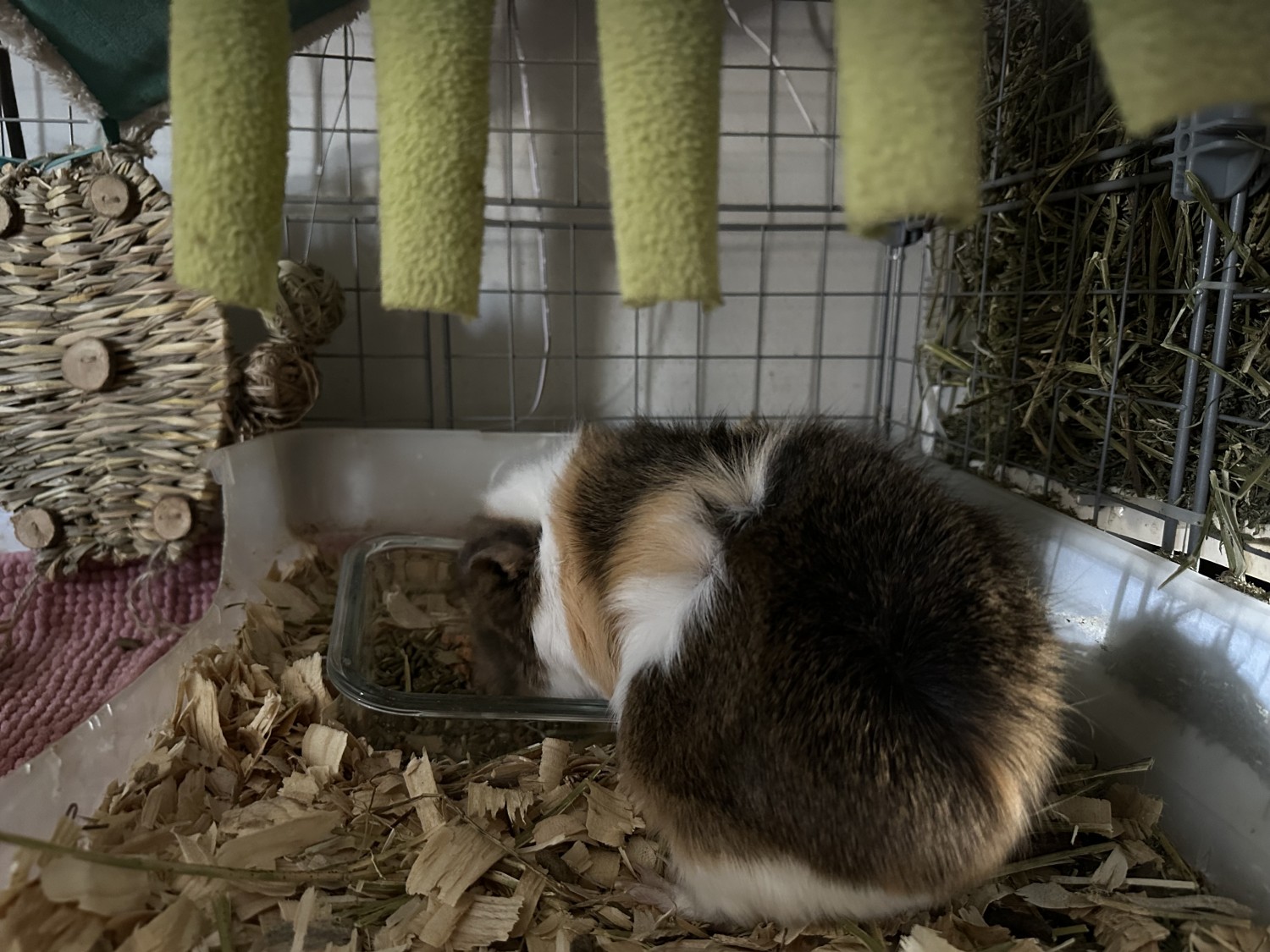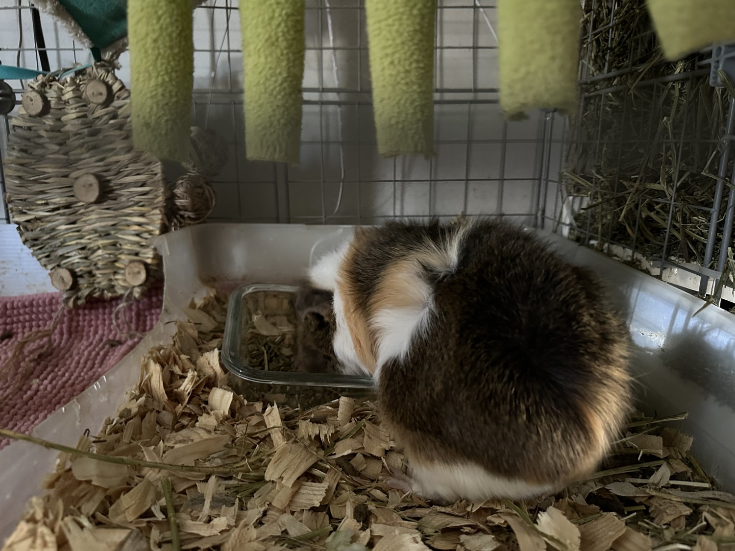 I need all pigs to go together and the cage is ready for them to transition to a new home easily and with grace! Rehoming fee is $160 with pigs, cage and bedding being included.
