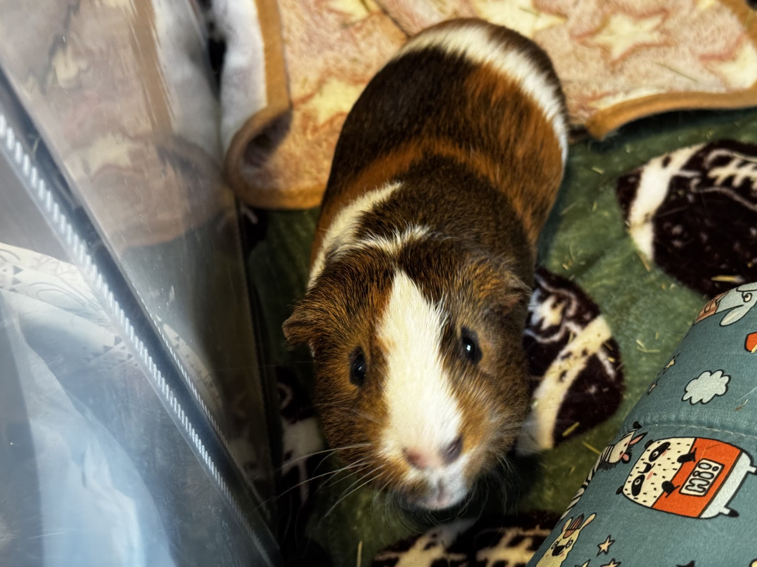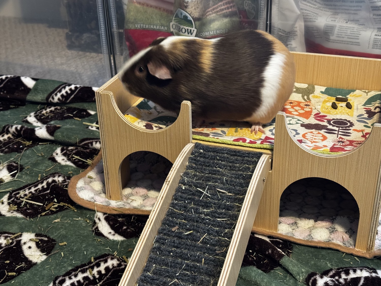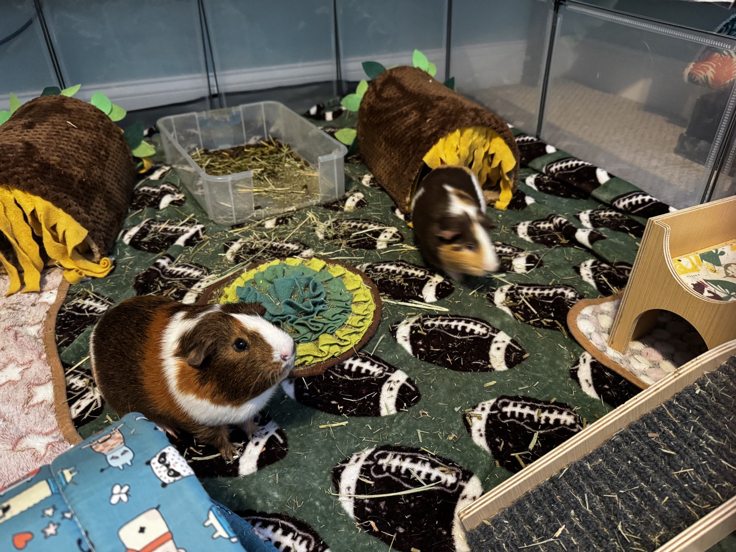 Mocha and Hershey are beautiful and healthy 1 year old short haired American Ginneas. They love fresh veggies and hay. They squeak with happiness when you’re in the room with them and giving them treats.