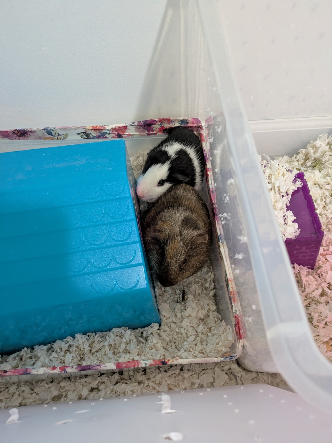 I have two male guinea pigs (Basil and Button) who I believe are under a year old. I purchased Basil from Petland and Button from Pet Supplies Plus. Basil just went to the vet the other day and got a clean bill of health. Both piggies have some mild foot irritation and old scars from them biting each others' ears but are otherwise healthy. They have a lot to say (especially when it is time for food) and can be held and handled. Basil loves ear rubs and Button is an escape artist! I have Timothy hay, guinea pig food, food bowls, chews, a hay feeder, a water bottle, 2 hides, a makeshift enclosure and some bedding I can drop off with them. I also have a set of nail clippers, a brush, a comb, and small animal dry shampoo they can come with. With everything included with the piggies, I'm actually asking for $100 for both piggies and all accessories.