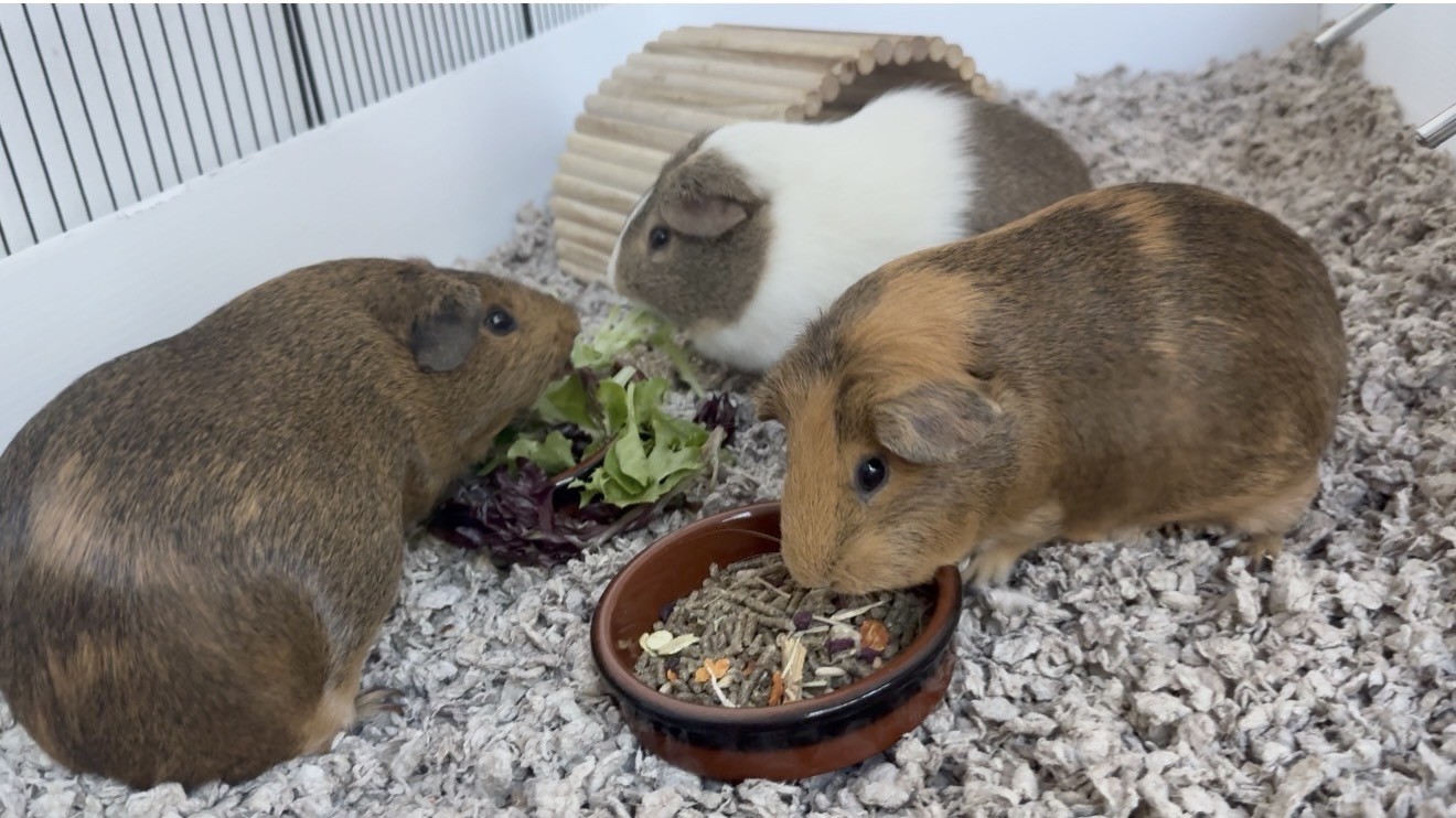 Bonded trio of female guinea pigs