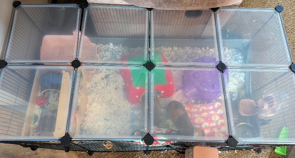 I didn't think about my dogs however. Two of my dogs have tried getting to the pigs to eat them, like they do with bunnies that occasionally get in the yard. Up until recently, my now ex-husband had dealt with those so I hadn't thought about it. Although my son says it will break his heart (which he will get over quickly like 5 year olds do), I've decided to re-home the pigs. It's been months and my dogs still try to get in the cage if they have the chance. I think it would be best if the pigs went somewhere they would be safe.