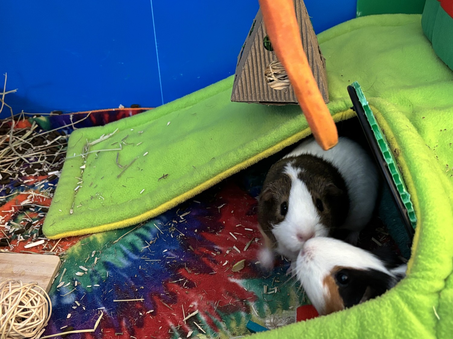 We have two sweet bonded sister that due to medical reasons, we are unable to continue to keep. They are a year and a half old - the came to us as when they were 6 weeks old in October 2024. They love nose boops, cucumbers, and having the zoomies (and occasionally nipping each other in the rear end). Two-piggie cage, fleece bedding (2 sets), and accessories can be included.