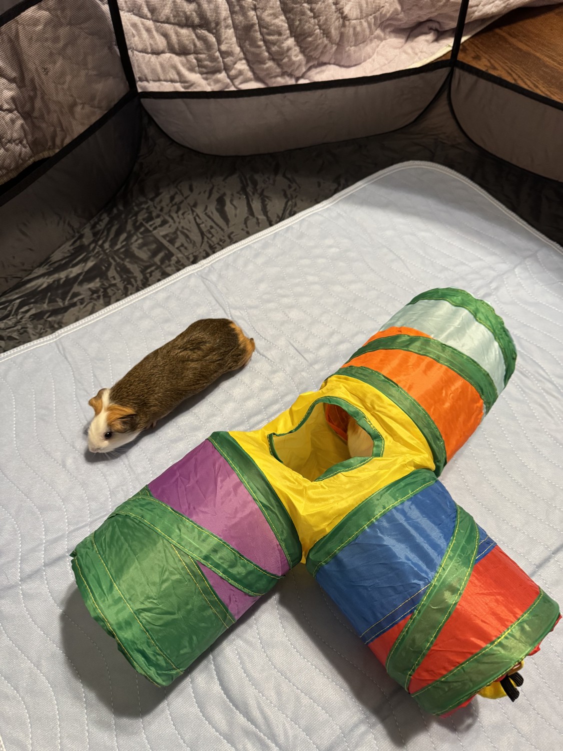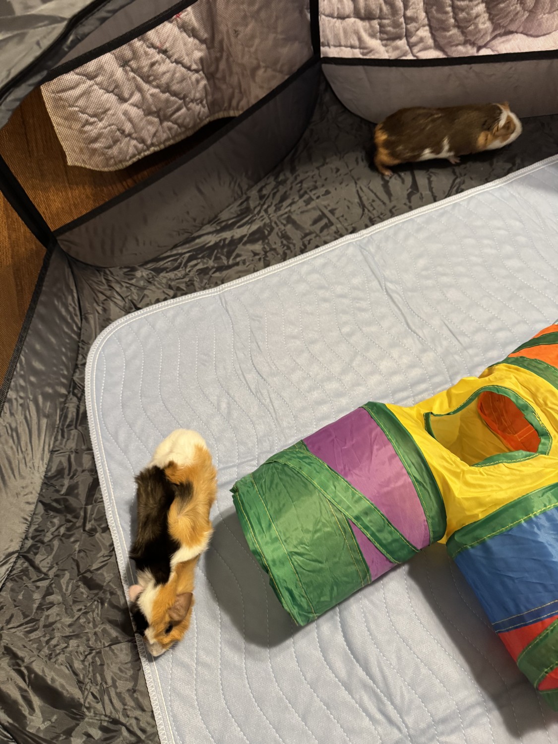 Due to our household having other pets and a busy environment, we feel our guinea pigs would do best in a calmer home where they can be safely housed and receive more focused care and attention.Timing