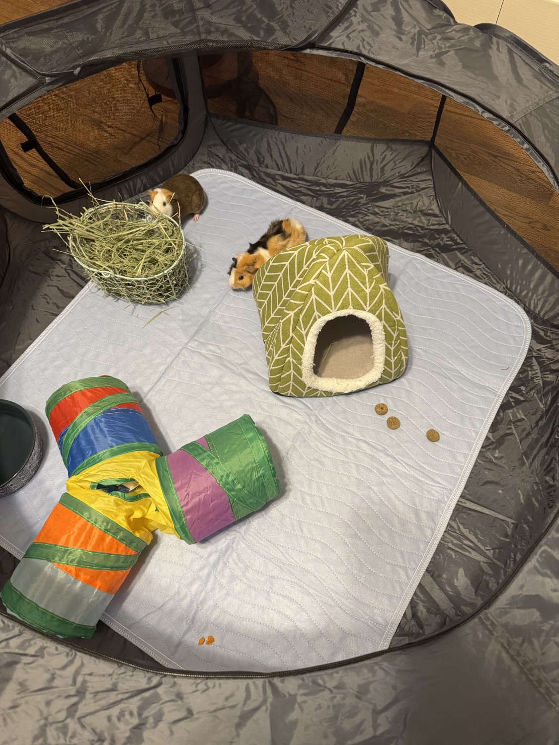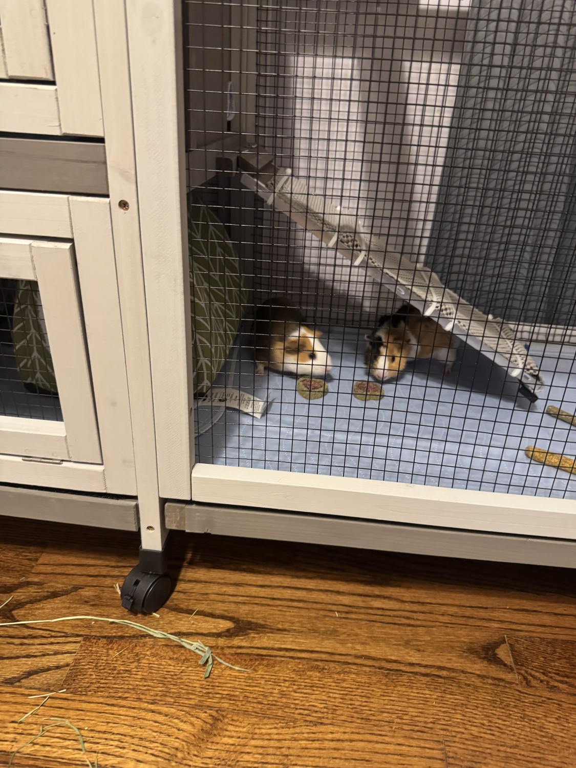 They will come with their current rabbit hutch/cage, a secondary play enclosure for floor time, water bottles, and their basic supplies to help make the transition easy. We are committed to finding them a loving, responsible home with someone familiar with guinea pig care who can give them the time, space, and daily attention they deserve.
