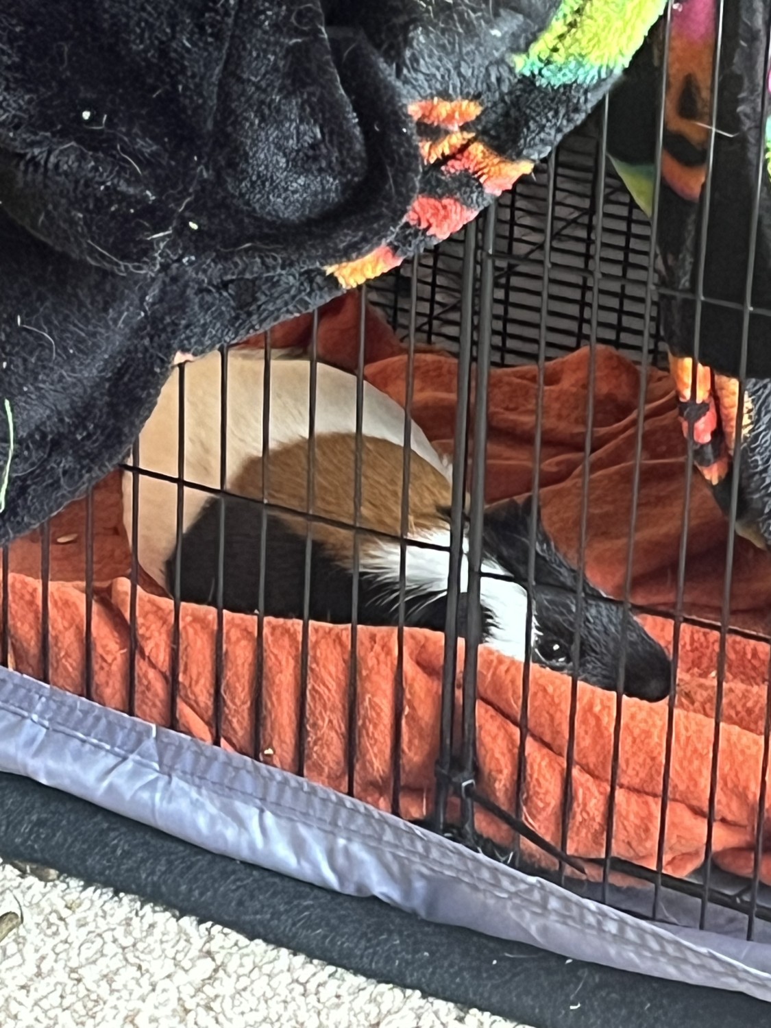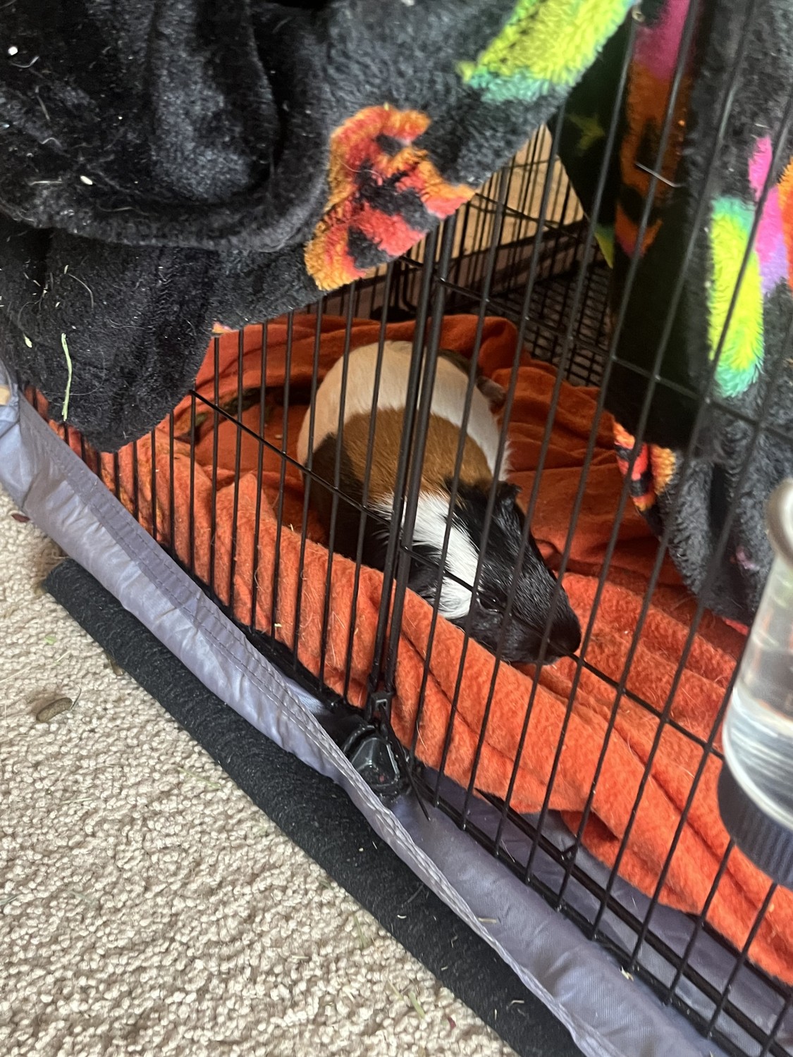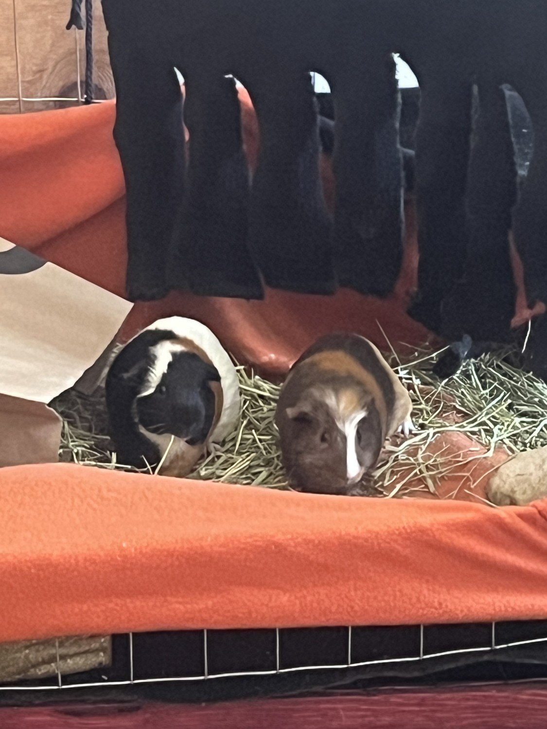 NOTE: these pictures are in their old hand made cage. I recently obtained a new link together cage and will give this over with the pigs no extra cost if I think the home is right for them. It is a very fancy setup.