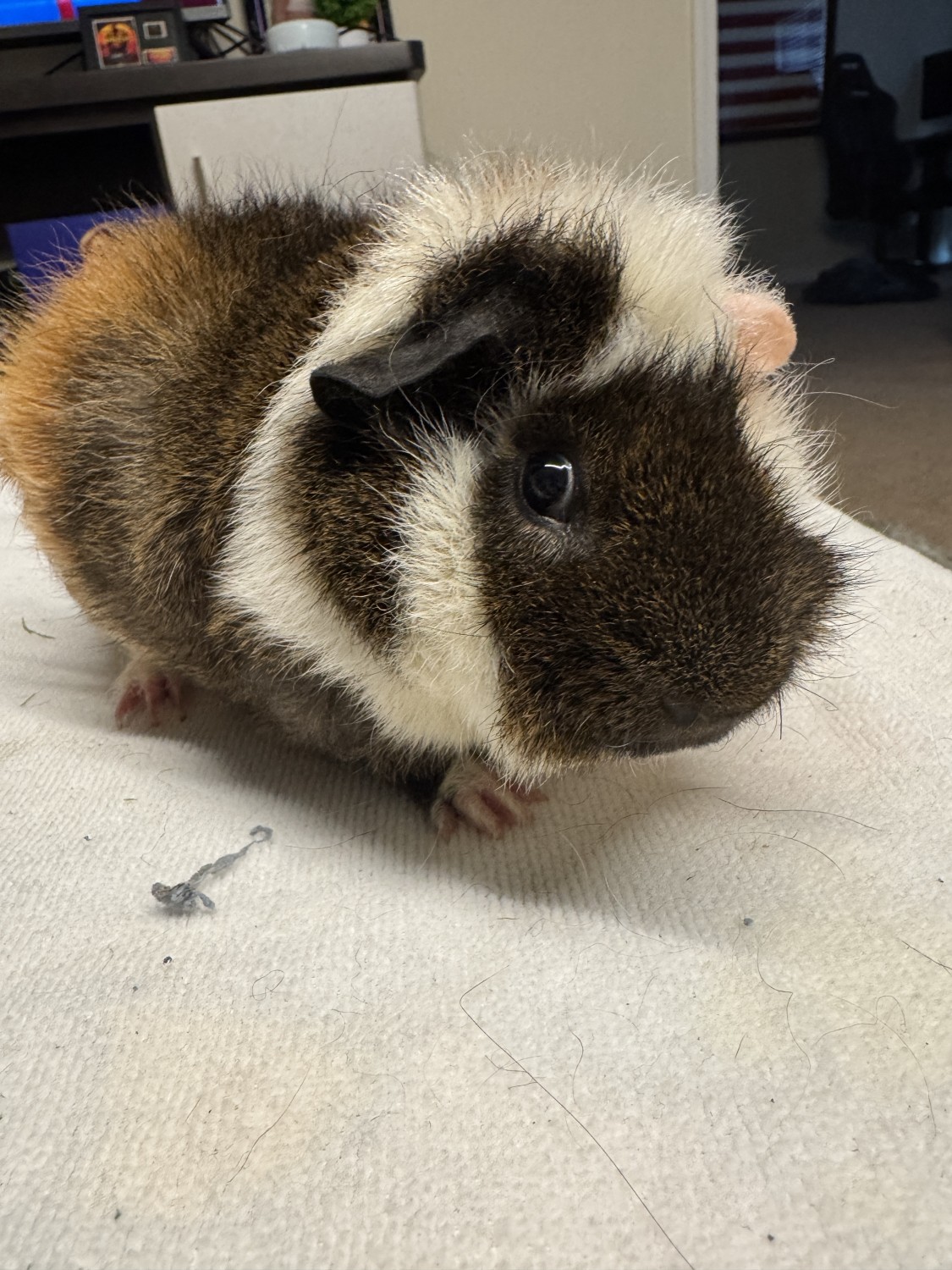 Unfortunately due issues with his cage mates, we are having to rehome one of my guinea pigs, Beef. He is about 8 months old and was bought from a pet store so unsure of his exact age. He is very sweet, a little skiddish but he will warm up to you. I have three other guinea pigs at home who seem to reject him or dont really respond well so i'm hoping to find someone with a loving home and/or already has guinea pig experience.Timing