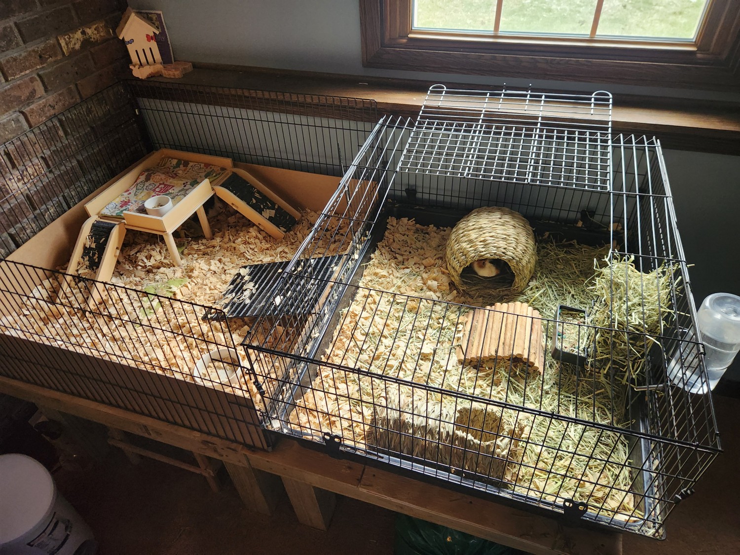 They are both very friendly guinea pigs, one shirt hair and one long hair. They have never bitten and the short hair piggy is very curious. She will be underneath your hands as you are trying to clean her cage (in a cute way). The short hair one also loves being petted and the long hair one, although skiddish, will enjoy pets as well. They do well with being held. We will include 2 cages (we use the white one as an outdoor play pen), mats, feed dishes, water bottle, hideaways, nail clippers, and small animal hair clippers for the long hair piggy.