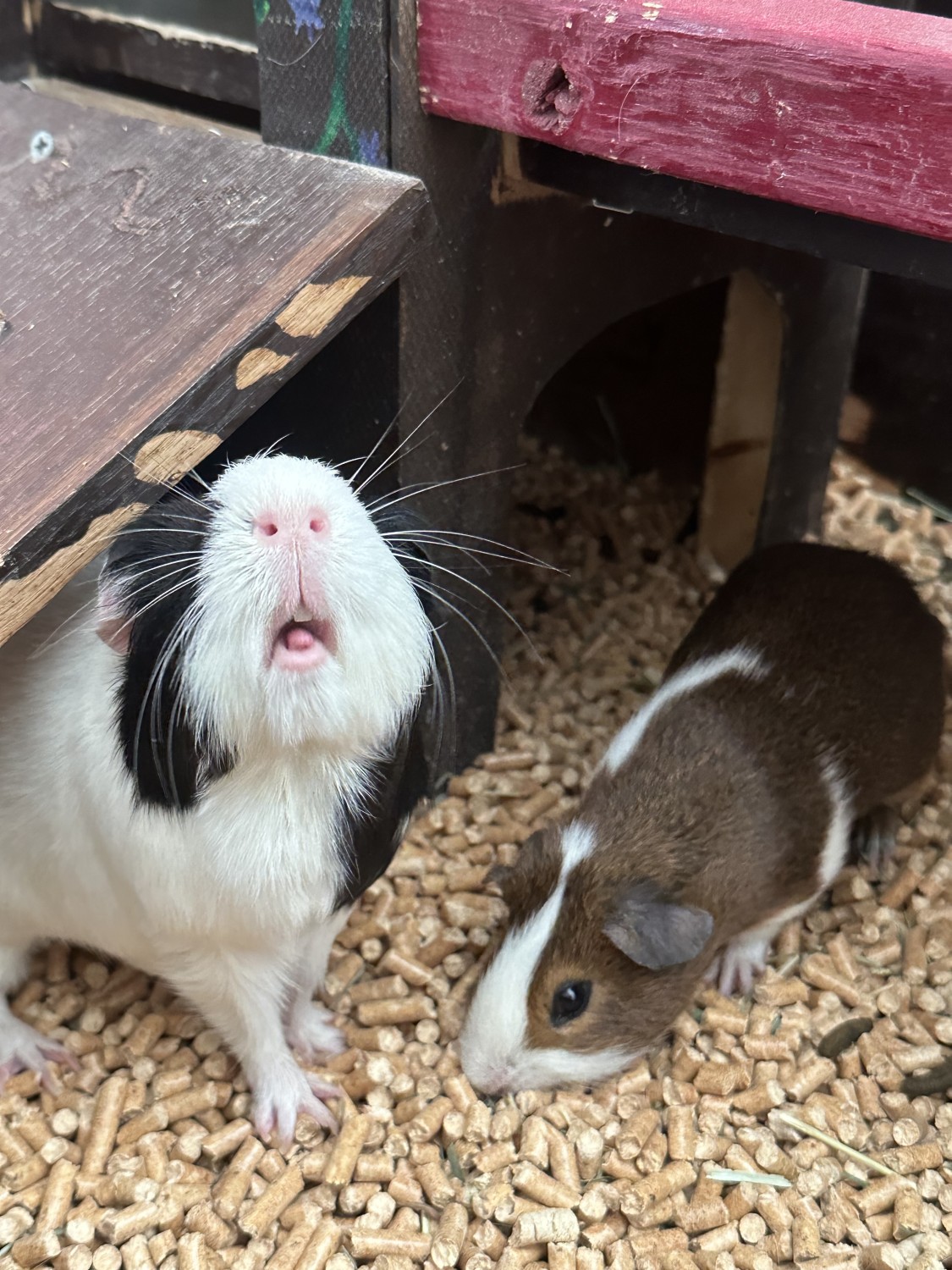 Recently brought this little guy home in hopes he would bond with my older male pig (his brother had passed away last year) They did fine together for the first 2 weeks, but now the younger piggy has gotten bigger and more dominant. He’s started to chase and even bitten my older male, I have a temporary pen setup to keep them separate. Looking to find a good home for this outgoing, curious and sweet boy. Please message me if interestedTiming