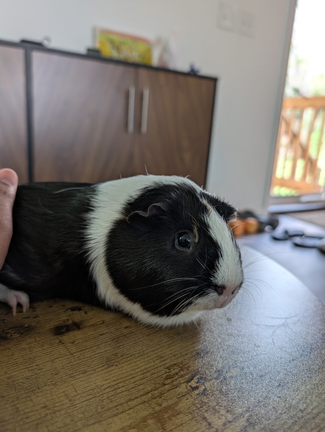 We are Peanut and Oreo a pair of loving girls. We come together. Oreo can sometimes aggravate me, but I do the same to her. We love to eat and not just hay. Anything from fresh carrots, apples, celery, treats and good food. We stay awake for most of the day and tend to stay in our hideout. If you pick us up to hold us we get scared but once held we are fine. Please, we are looking for a home where someone has time to play with us and help us to understand that there is more to life than a cage. If you think you're the right, then please don't hesitate, we can't wait to meet you!
