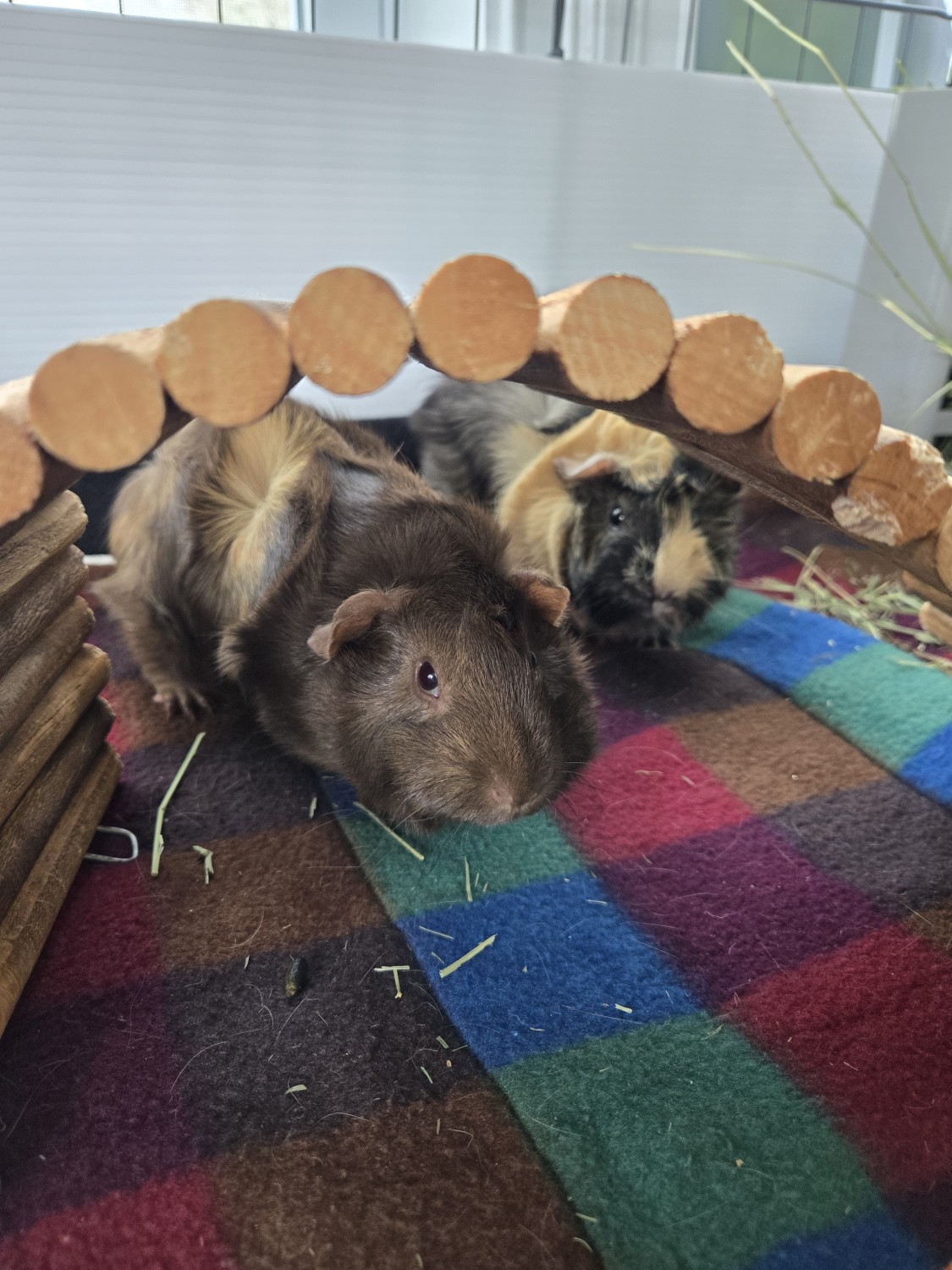 They were bought for our children, one of whom has special needs. We thought they would be a great fit since he isnt very mobile. THey have been. He loves to snuggle with them. Unfortunatly, with our schedules changing and apponitments now taking up most of our time, were no longer able to give them the attention they s=deservve. Its not fair to them to have to spend most of the day, day after day in thier cage, and we want to find them a home where they can get more time, care and interaction. We have a 6'x3' 2 level cage and everything needed for them. We will be selling it if anyone is interested in it with them on top of the adoption fee