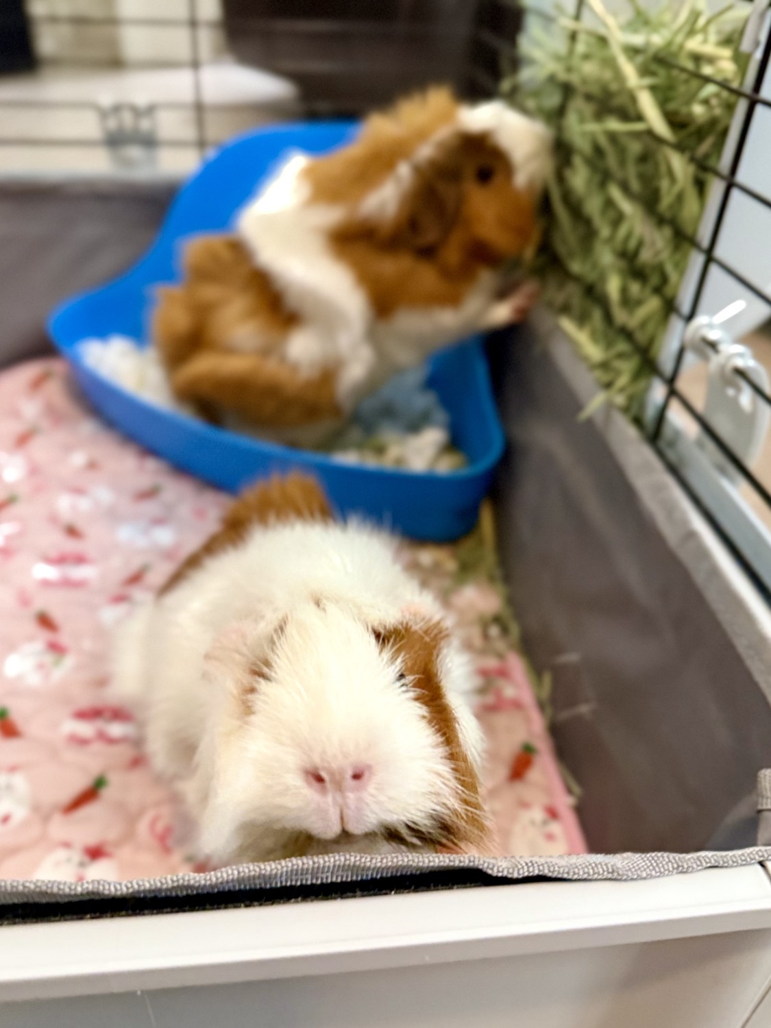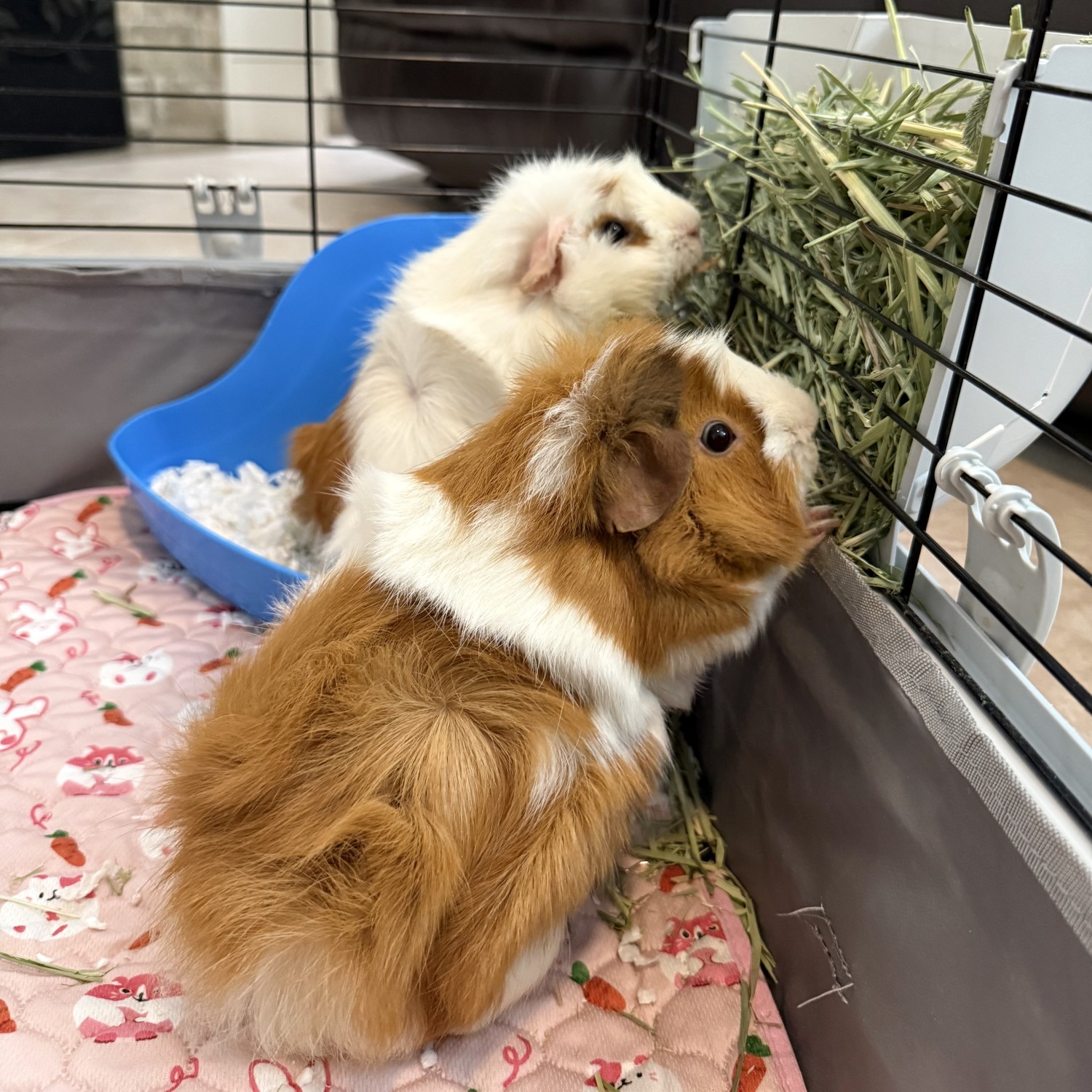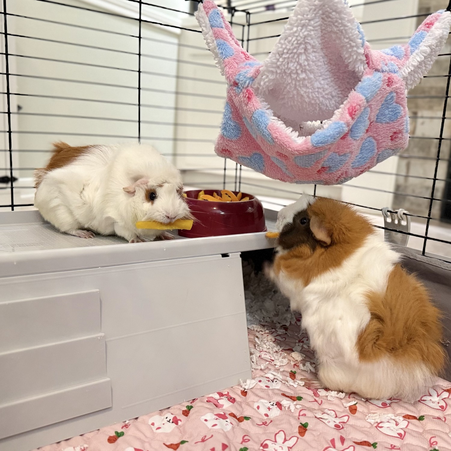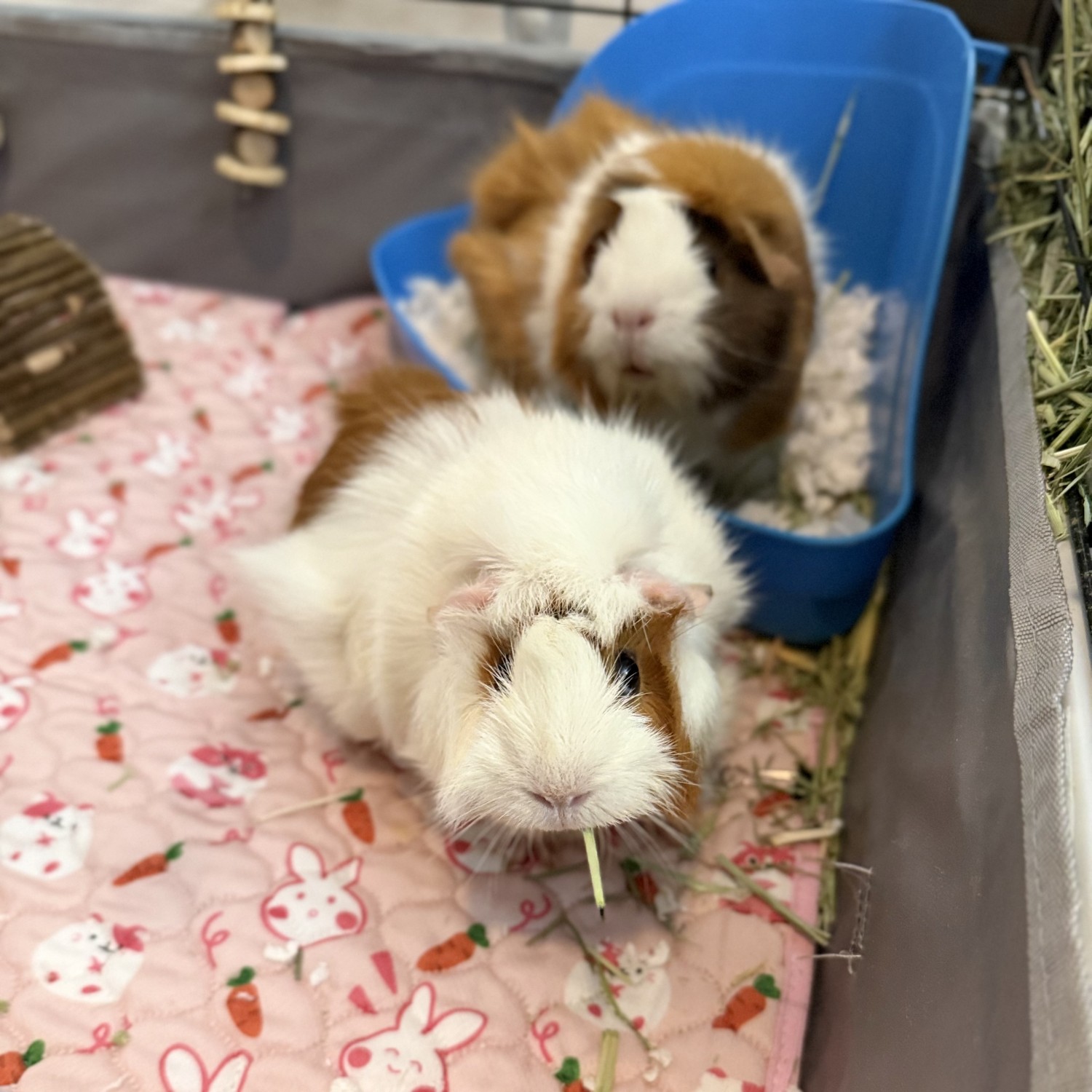 Cookie and Twix are a bonded pair of female guinea pigs looking for their forever home.