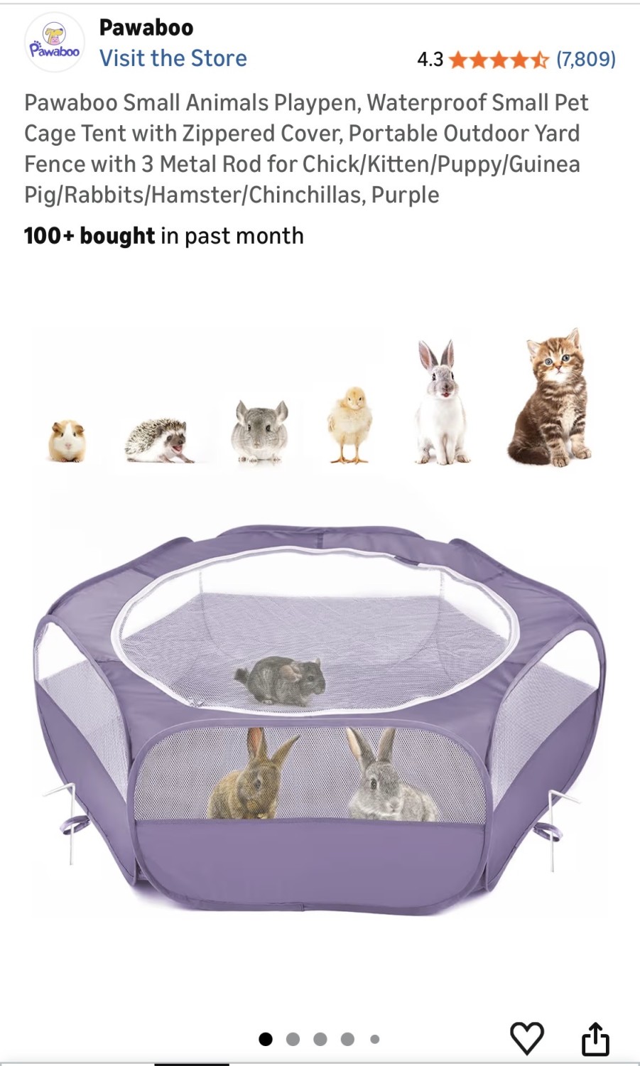 * Luxury Midwest-size cage with solid bottom, feeding shelf, bowl, hay feeder and 26oz water bottle * 4 waterproof liners * 4 absorbent pads * Litter tray * 2 wooden houses * Multiple waterproof fleece blankets * Multiple hammocks * Extra hay feeder * Feeding bowls * Extra cage to put guinea pigs in whilst cleaning big cage * Large pet playpen * Timothy hay * Feeding pellets * Hay cakes * Toys * Paper bedding * Cleaning solution See pictures. A package worth almost $1000. Negotiable Adoption Fee of $200.