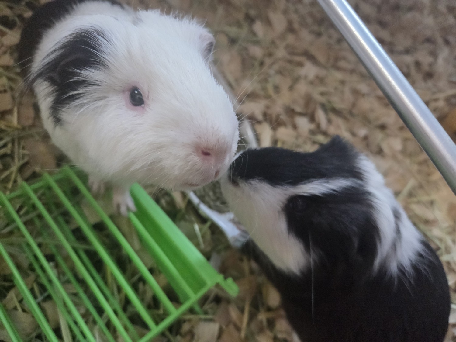I got the guinea pigs from a school that had them as pets looking to give them away, and recieved them at a time in which I thought I could reasonably take care of them. They are very sweet and friendly, and I'm sure they would benefit from a rehousing. Their current names are Chungus (the bigger one) and Tuxedo (the smaller one). Obviously, their names could be changed when given to the right home.