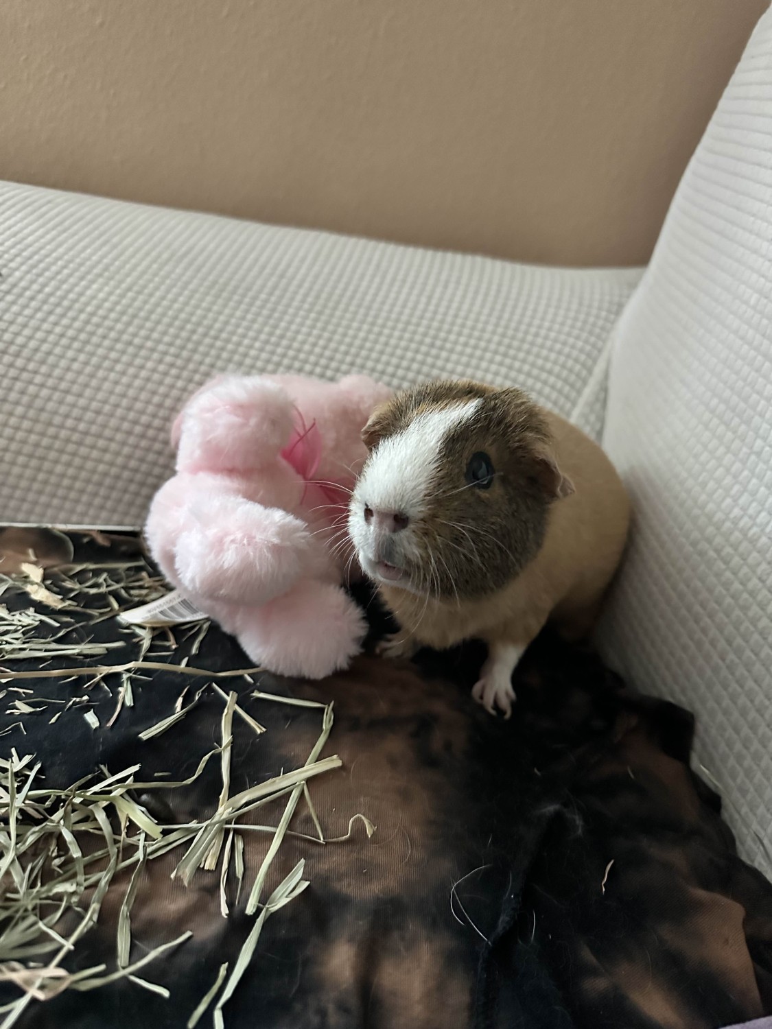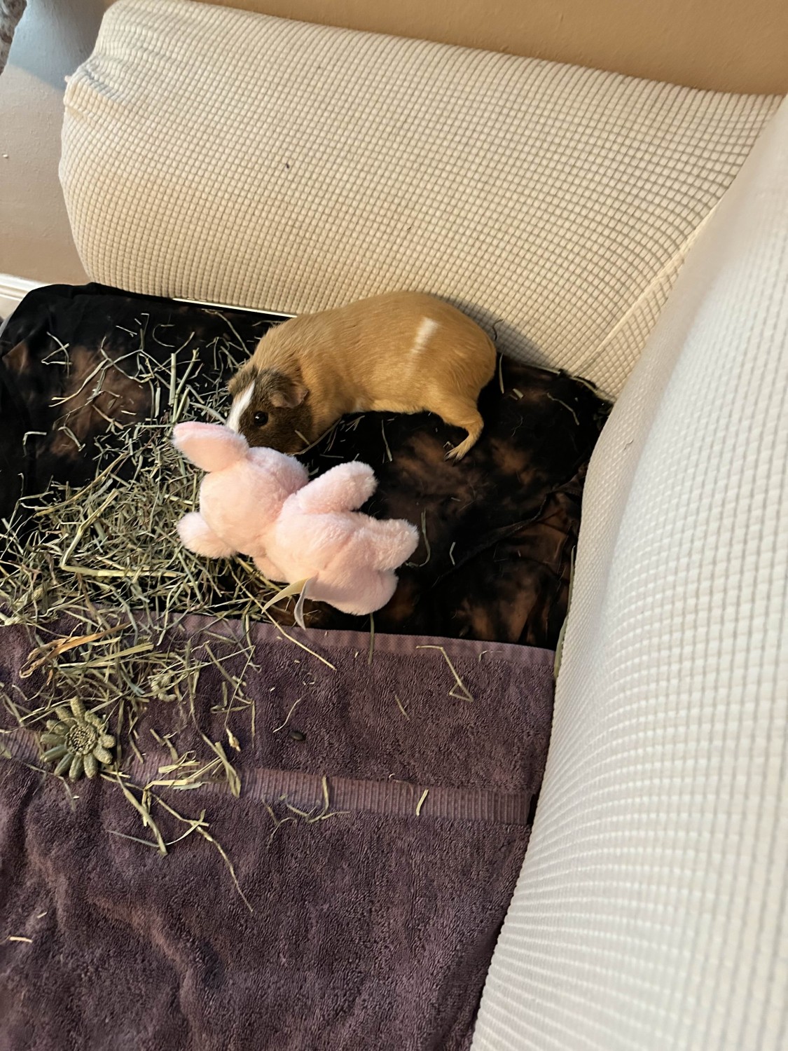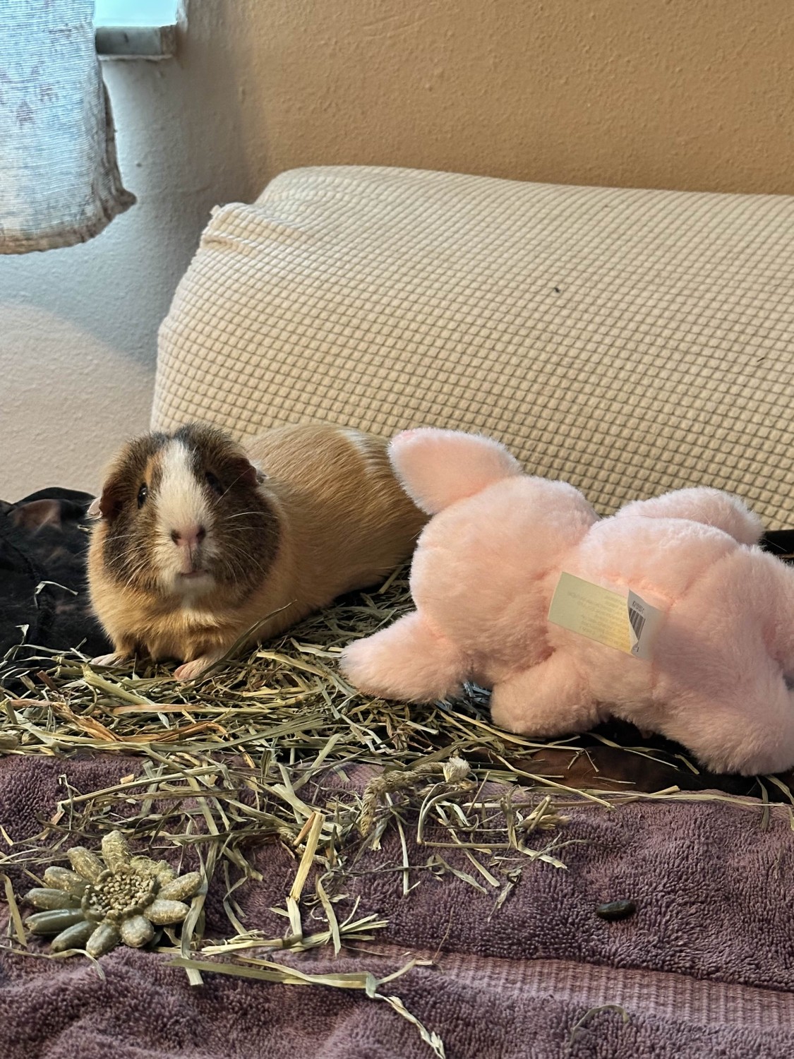 I've had River since he was a little pig. Originally I had two guinea pigs as I was adding her to the family. Eventually the number shrank to 2, and two months ago, my 7 year old Guinea pig passed. River has been a single pig for these 2 months and I absolutely love her. She's done great as a solo piggie and I want nothing but the absolute best for her. A friend had offered to take her, but turned out to be allergic to the hay, so she's coming back to me. But I leave in just two months so I don't have much time to find her a safe and loving home.