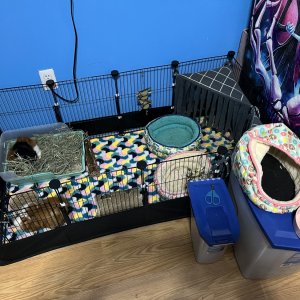 Rehoming my two guinea pigs taro and twix, they love each other but are in separate cages because they do fight but they bond amazingly with the divider in...